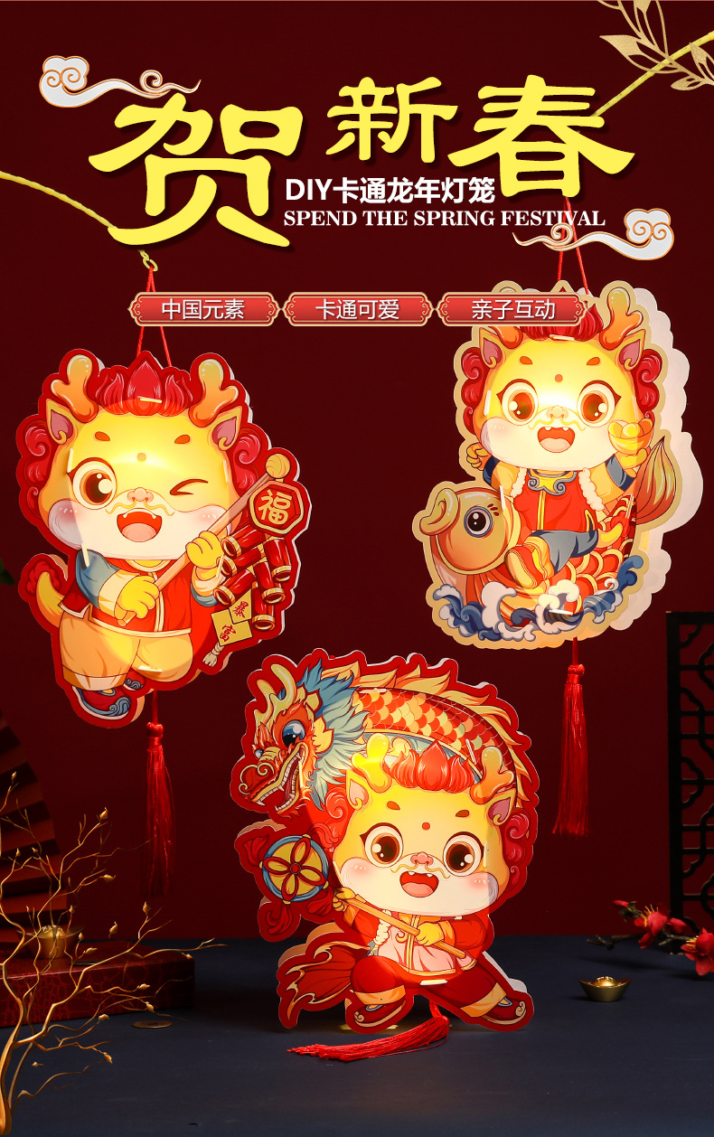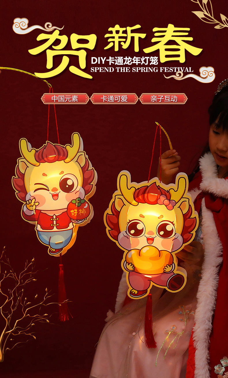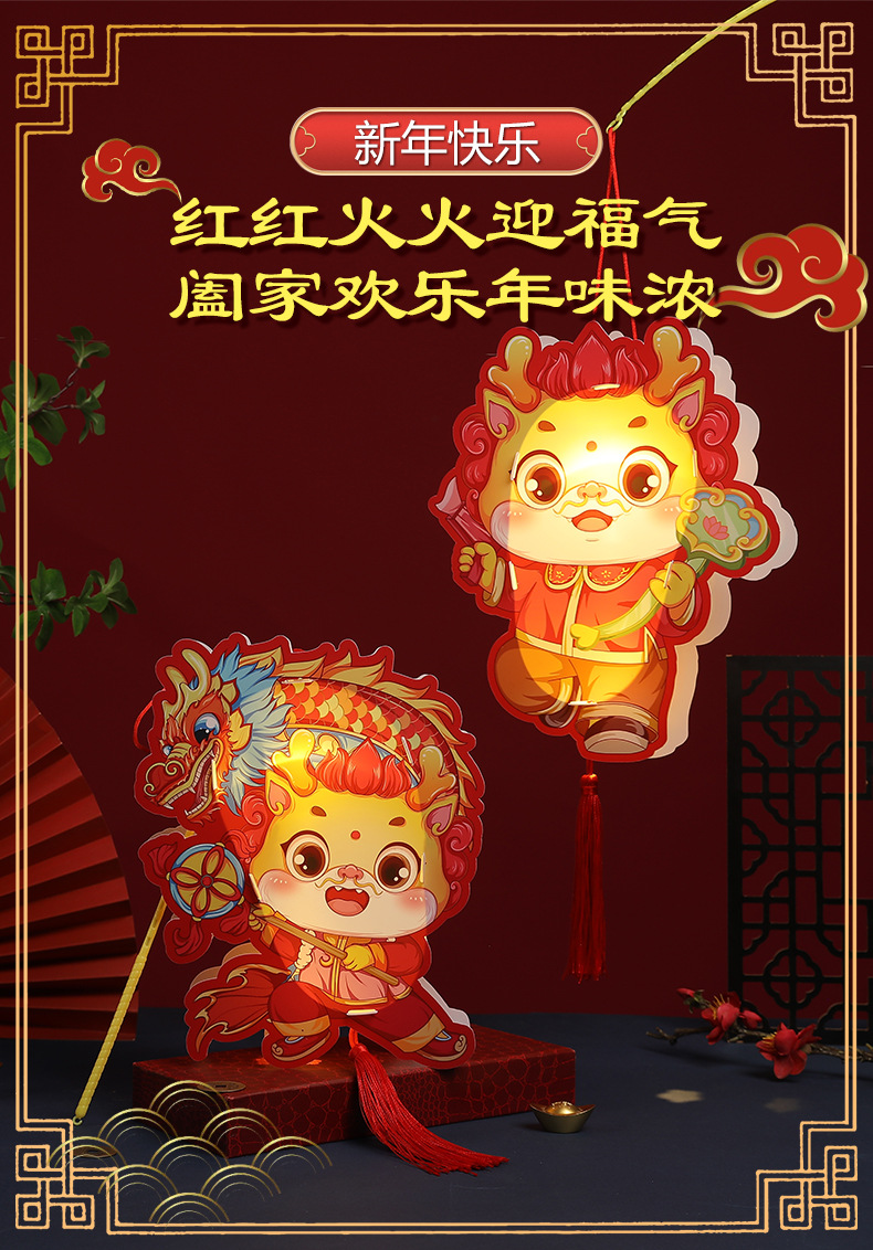 6个更超值【喜庆装饰❗️卡通蛇年灯笼】蛇年手提灯笼PVC发光灯笼儿童手工DIY材料包新年装饰品年货自由创作