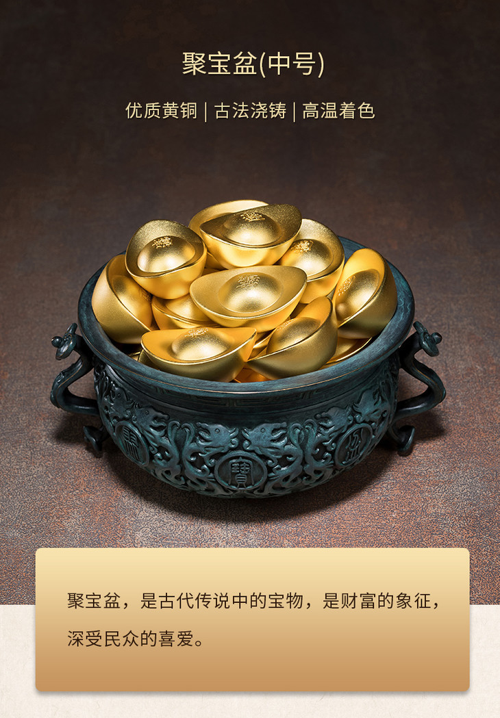 铜师傅 全铜摆件《聚宝盆(中号)》铜工艺品 家居饰品 摆件