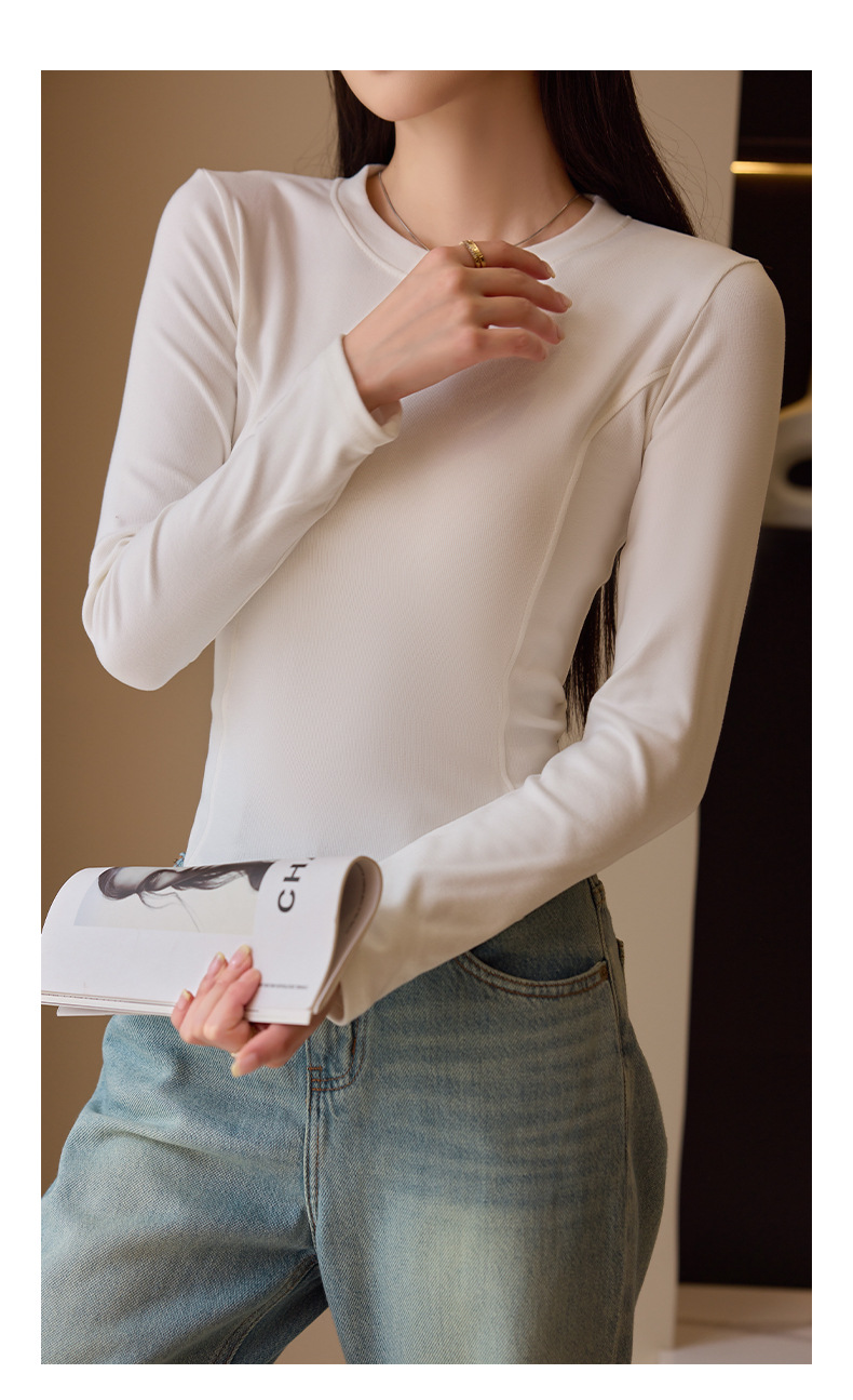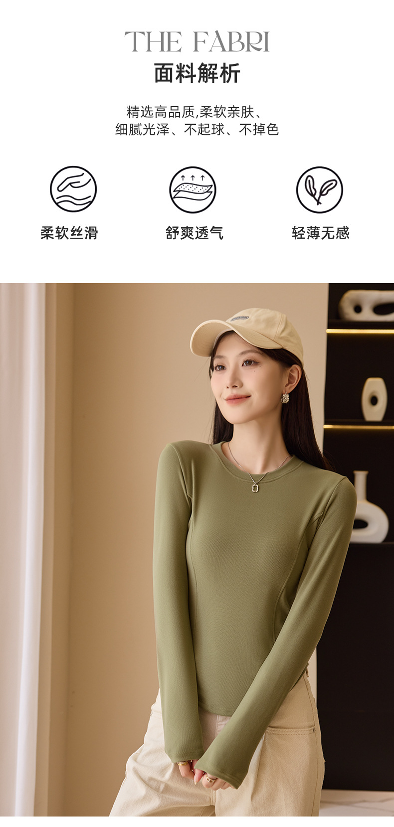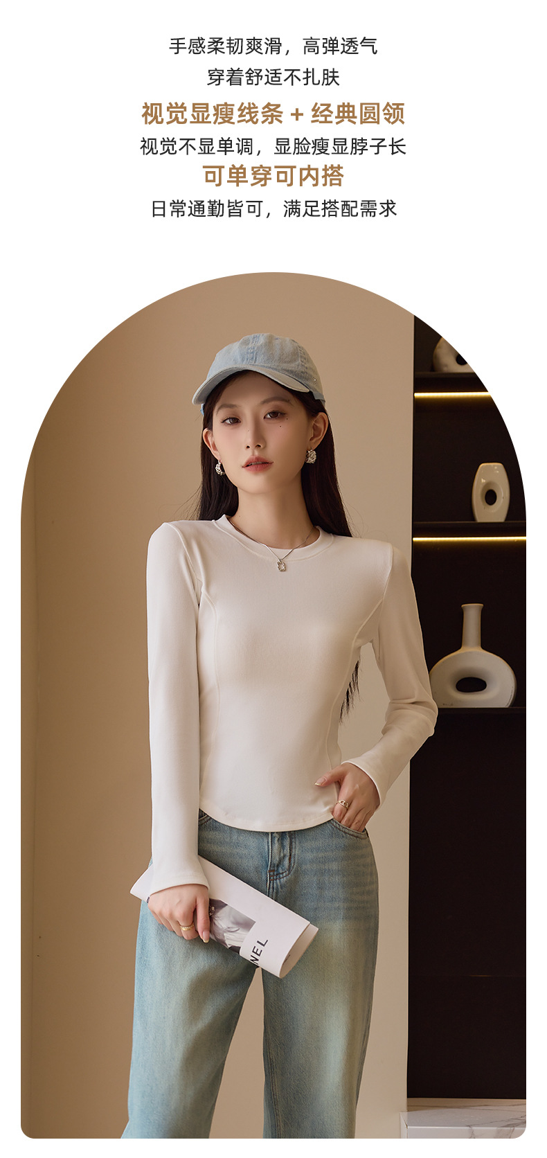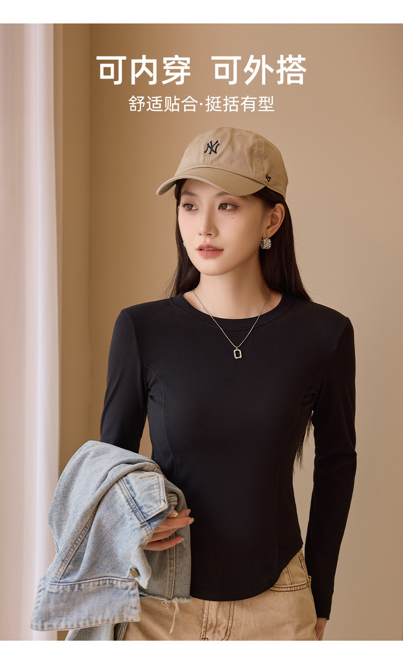 修身显瘦 穿出优雅女神 新款圆领修身显瘦打底衫 内搭秋冬黑色长袖 百搭t恤女式罗纹条上衣