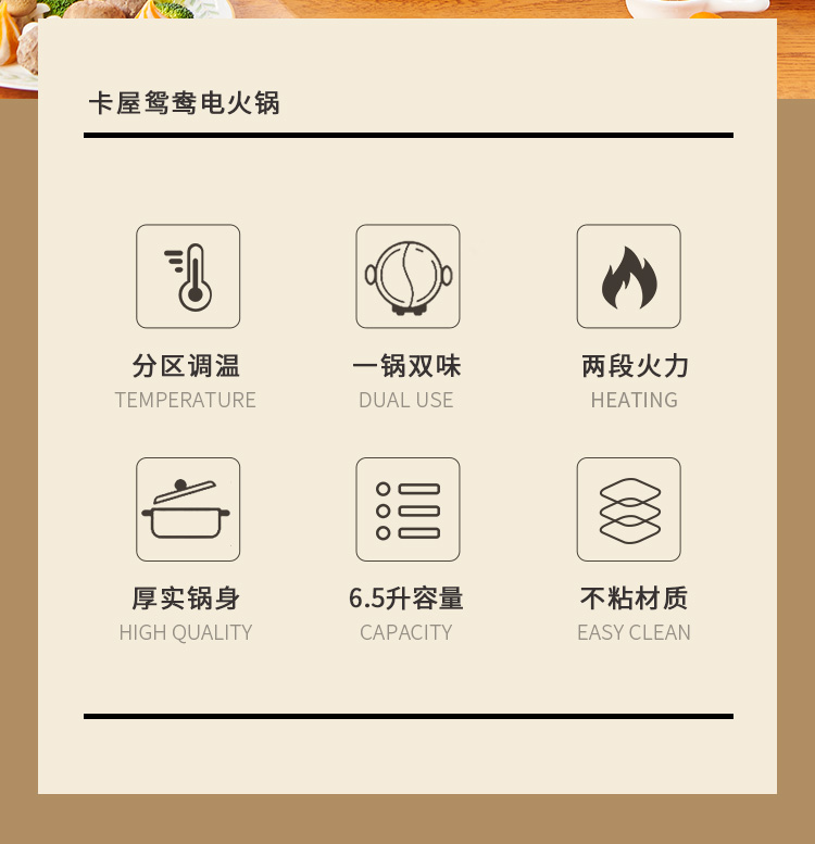 【品名】卡屋6.5L鸳鸯电火锅