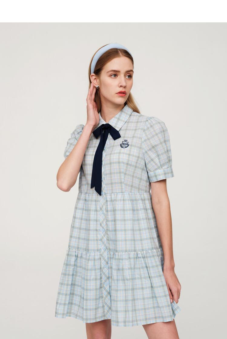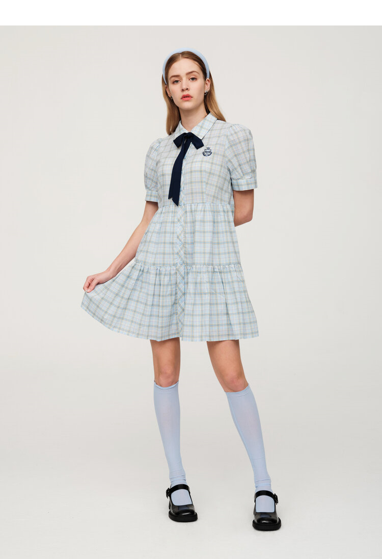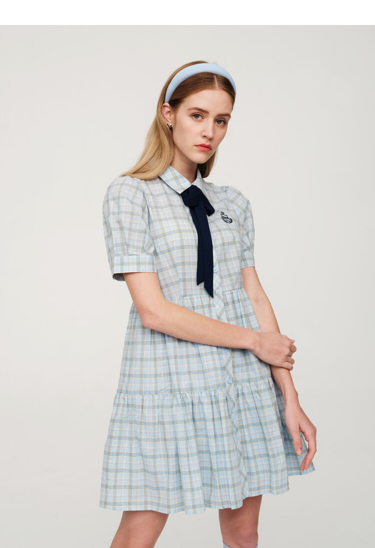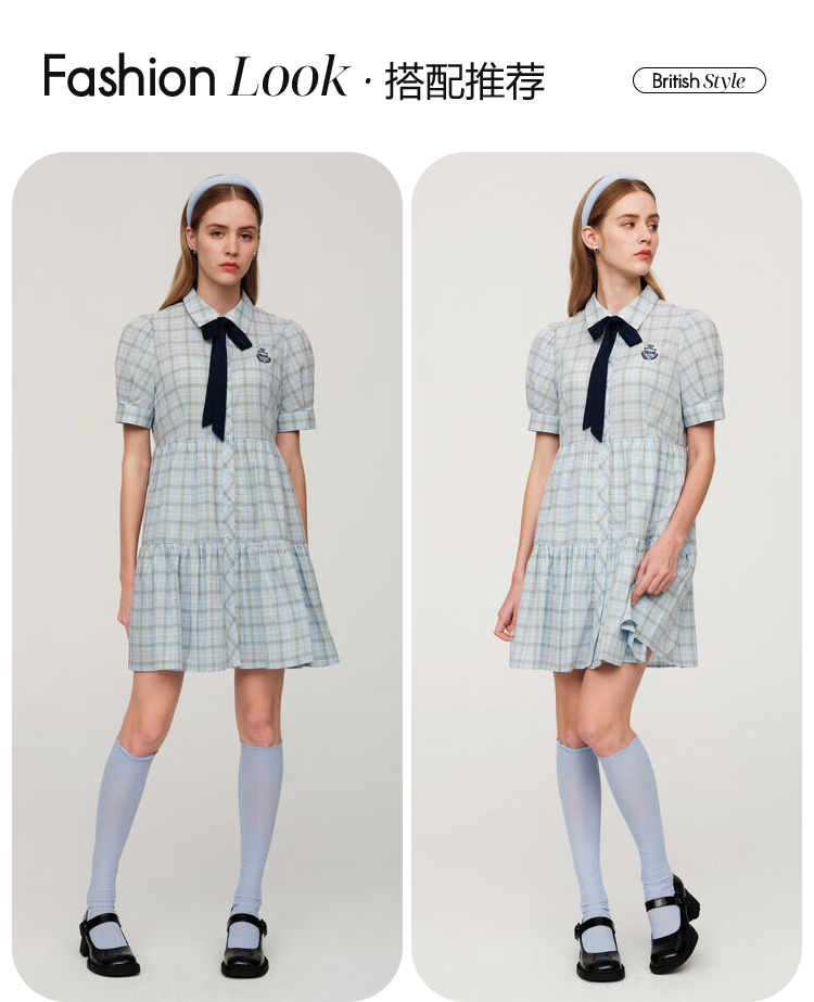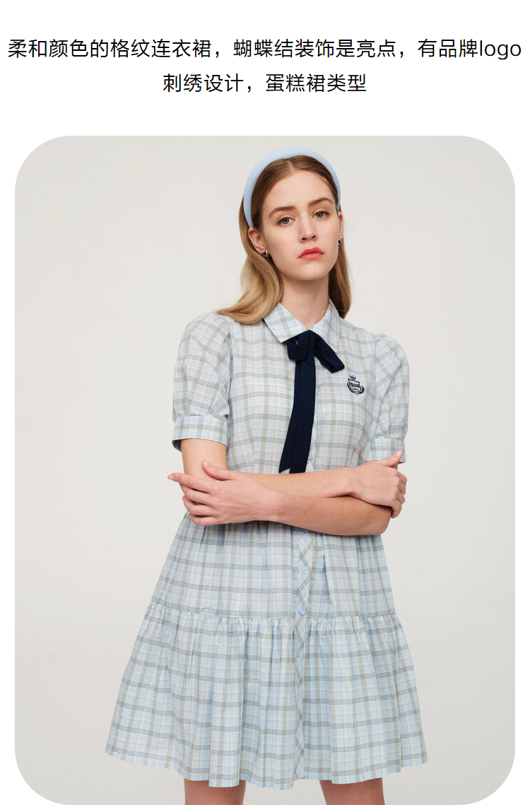 ELAND衣恋街头风格子中长款连衣裙EEOWC25N7B