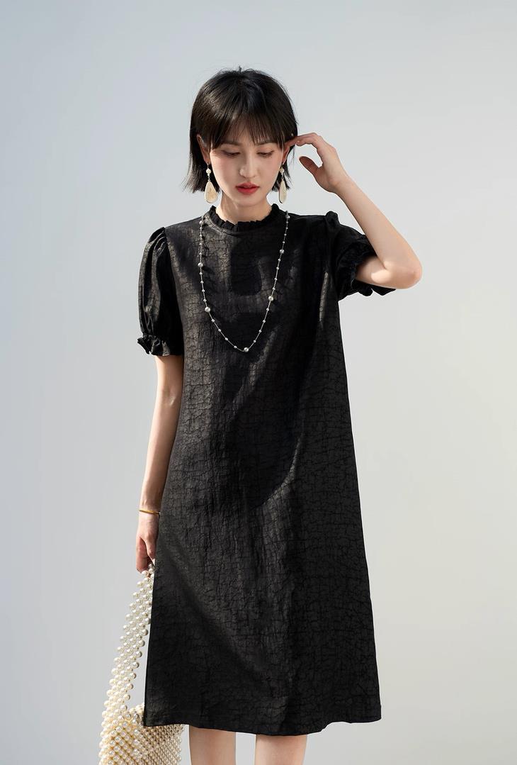 第二款是艺术风【木耳边泡泡袖龟裂纹连衣裙】