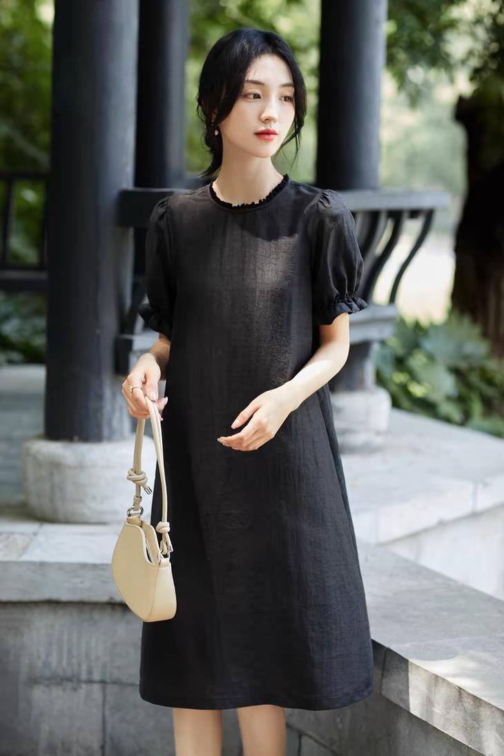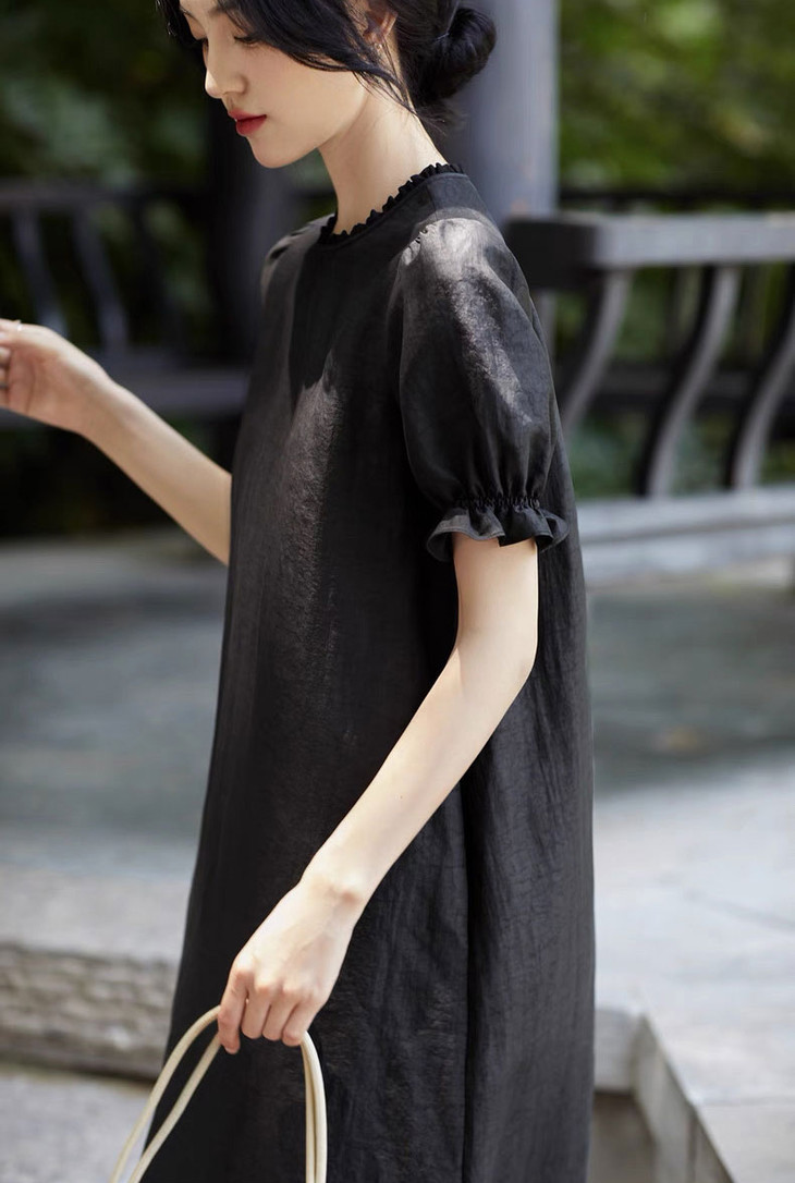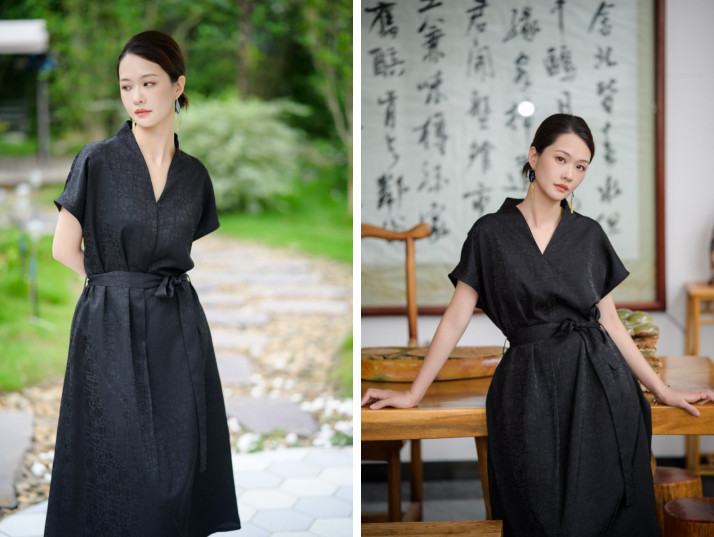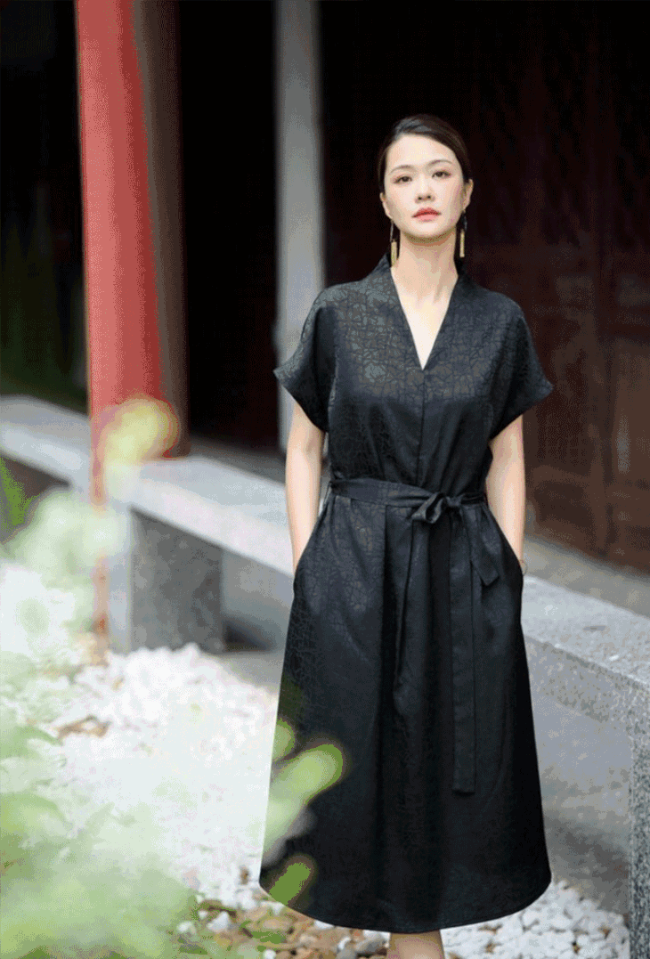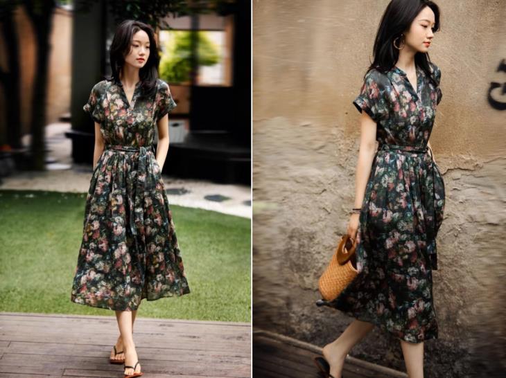 这盛夏美裙,添加了42%的桑蚕丝胚布而成的香云纱,媲美全真丝香云纱,触肤瞬间的凉爽与顺滑感,让人穿着就不想脱下来。