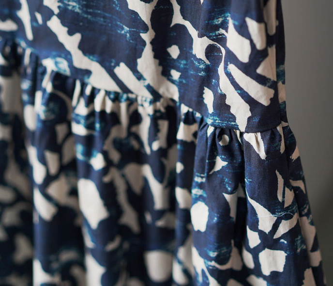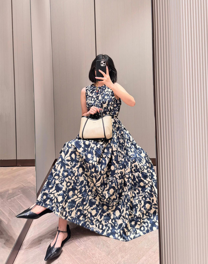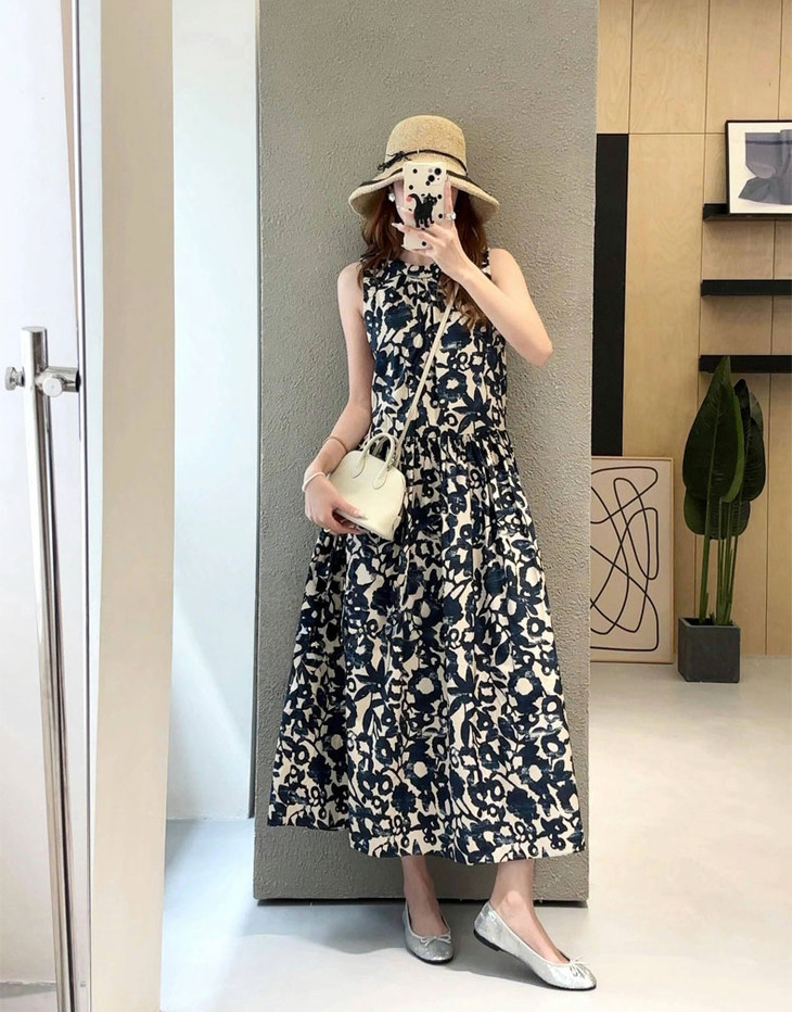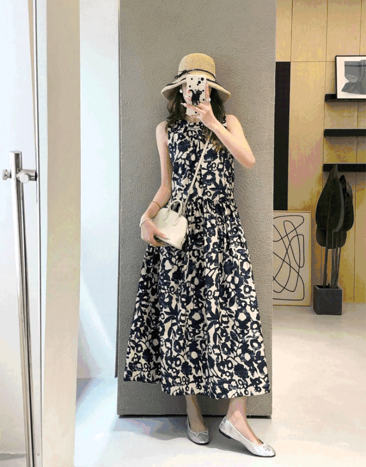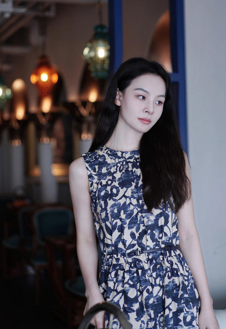 泼墨蓝白印花,犹如把莫奈花园穿在身上,就像是艺术品一般。
