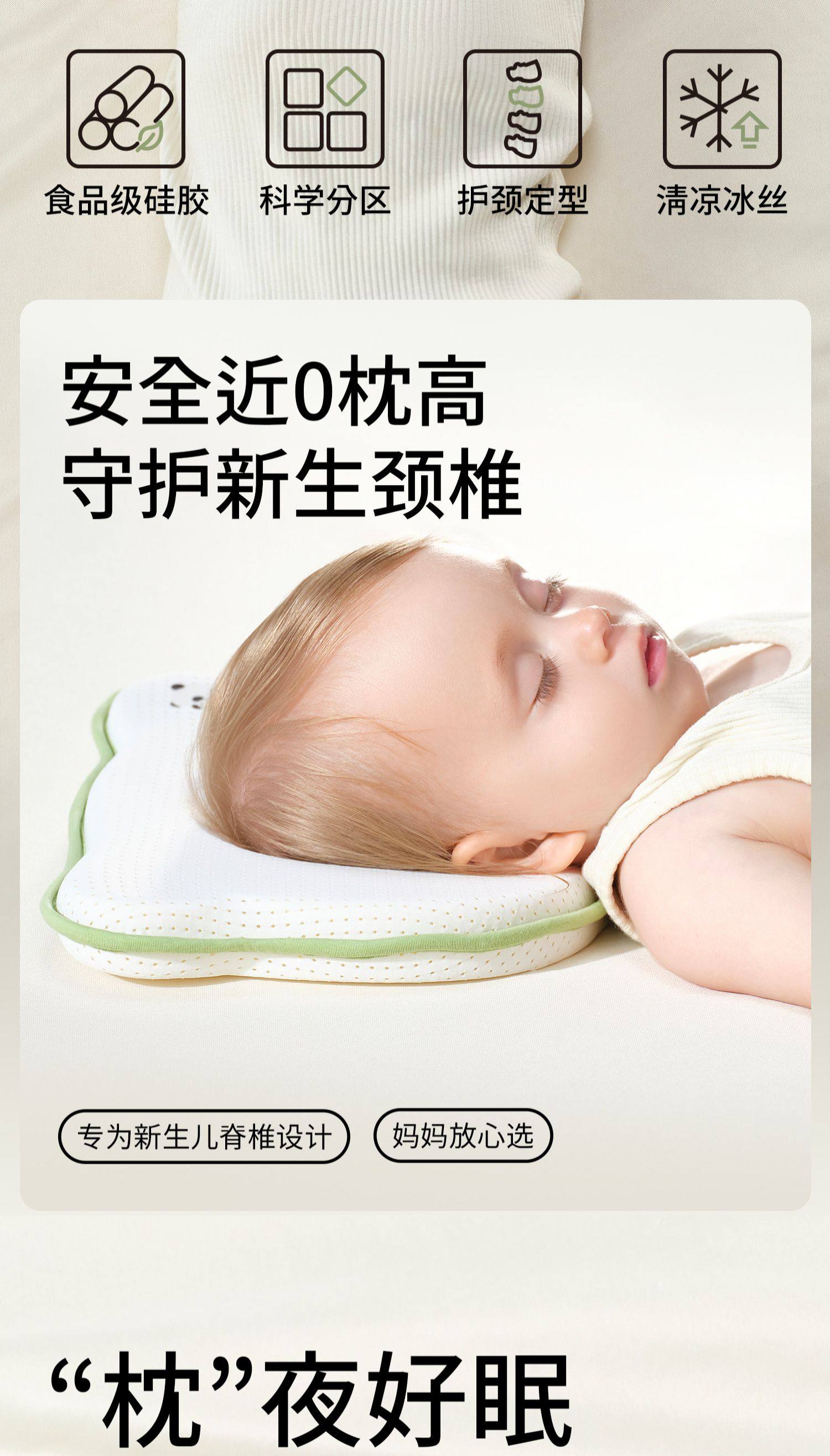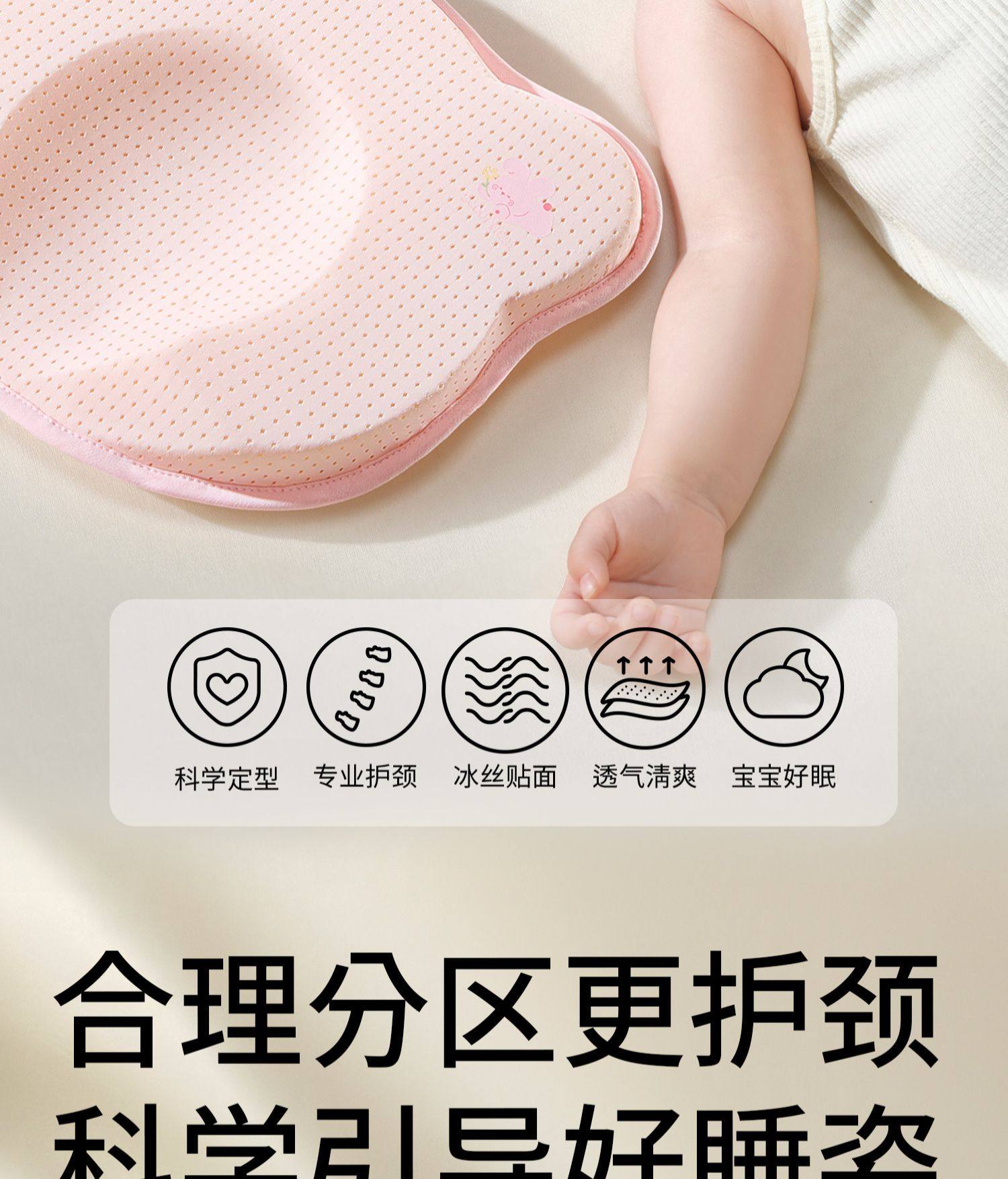 科巢婴儿冰丝定型枕夏季专用新生儿纠正头型0到6个月一3硅胶枕头