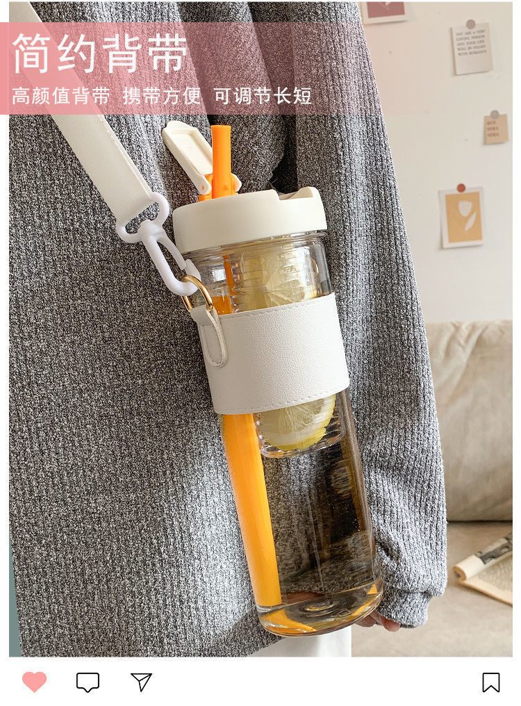 「四款配色!茶水分离」泡茶杯塑料杯女颜值网红水杯透明办公室冷萃杯子带吸管餐饮用具