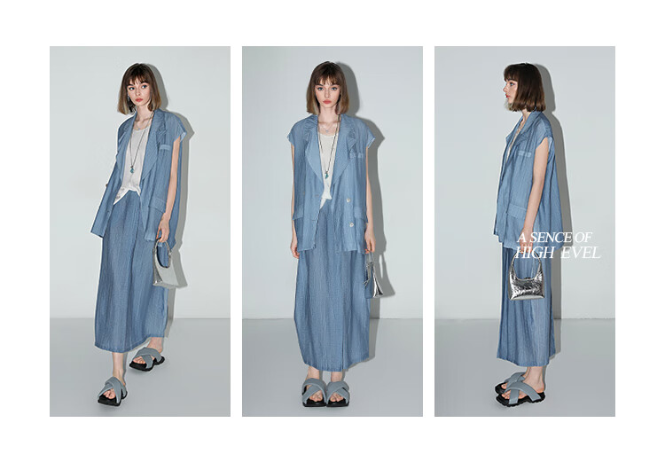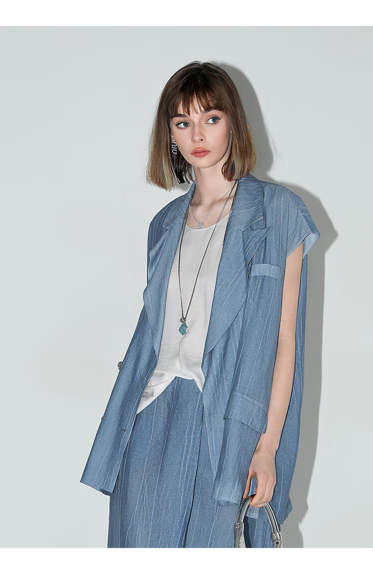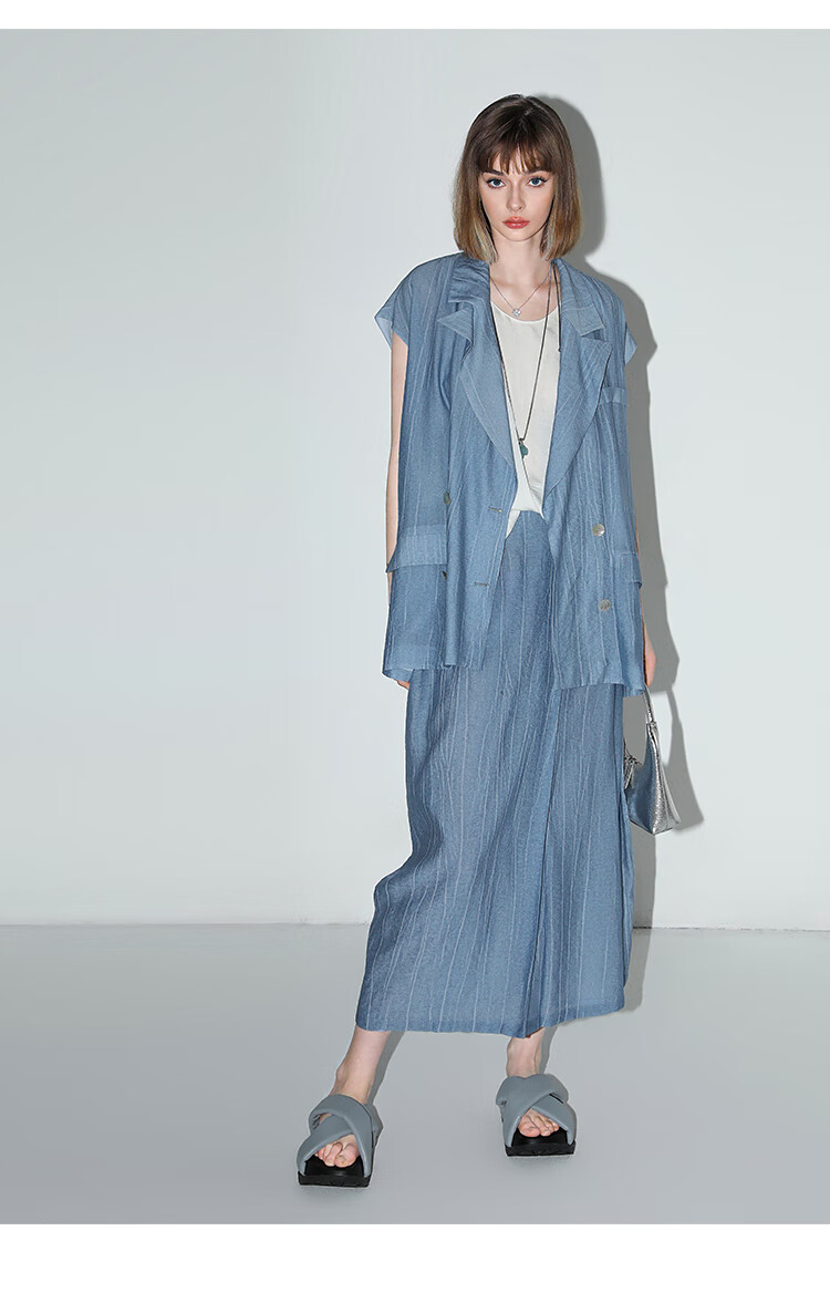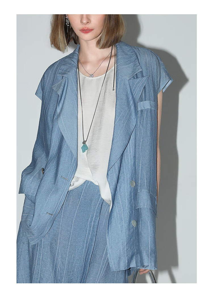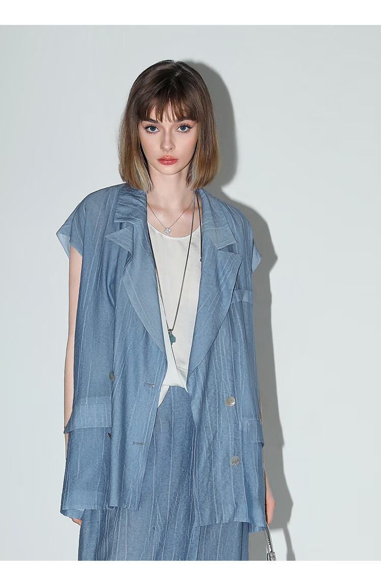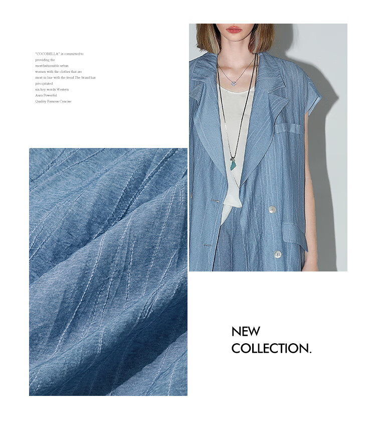 【限时特惠】COCOBELLA古法木兰炒色压褶马夹夏轻薄双排扣通勤马甲WS3001