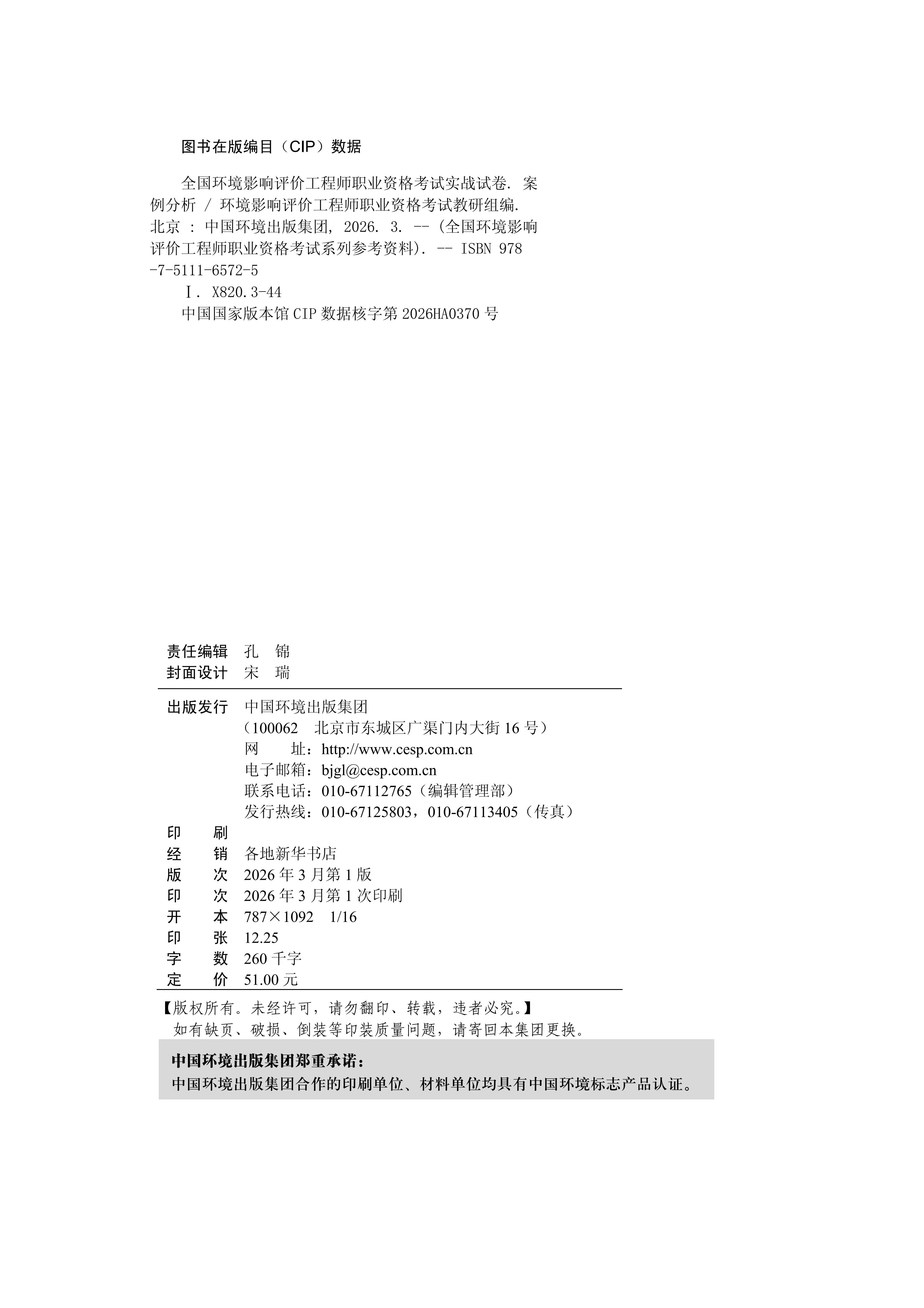 备考2026年 全国环境影响评价工程师职业资格考试实战试卷 案例分析 9787511165725
