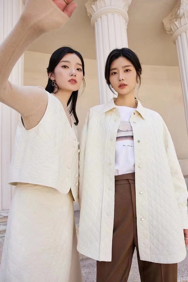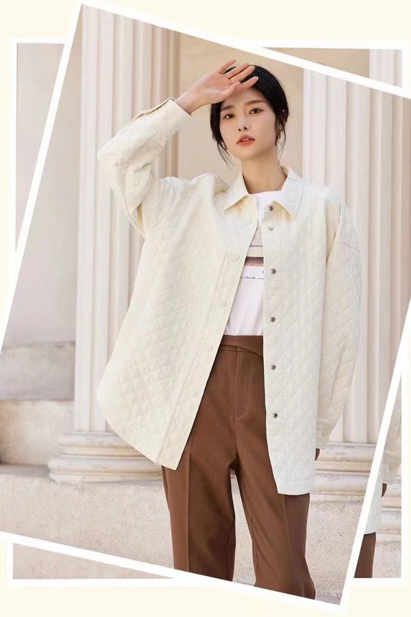LNNNS 米白色翻领菱格纹外套 19827