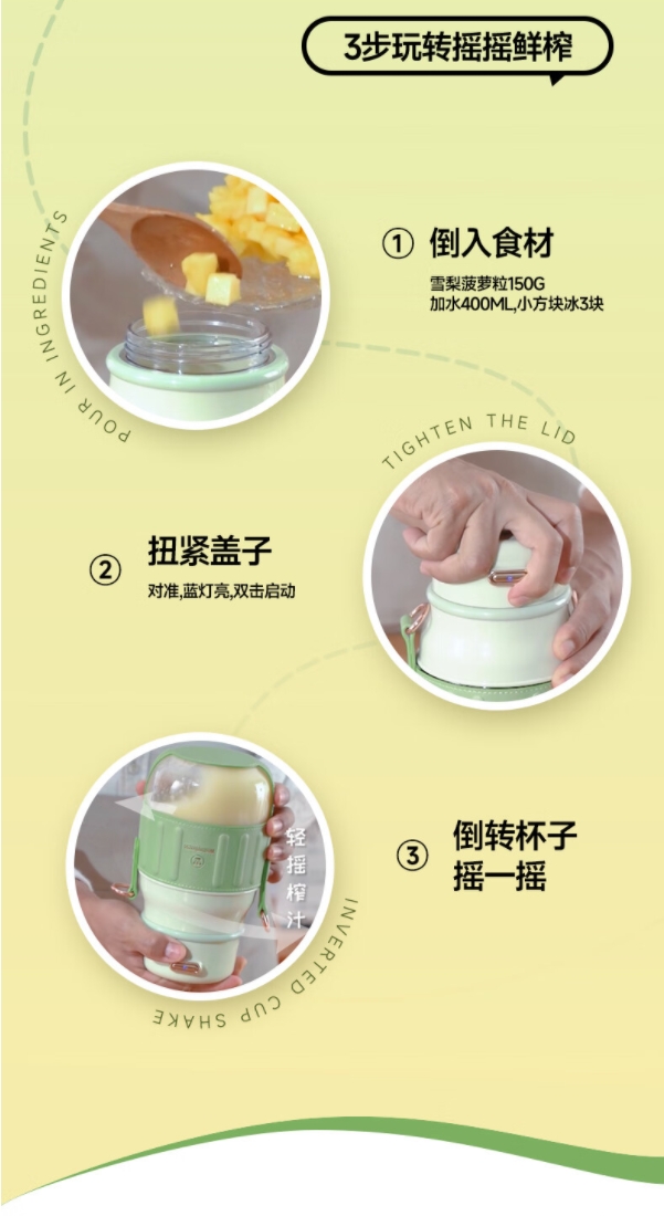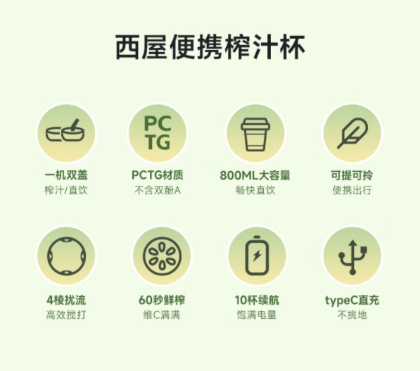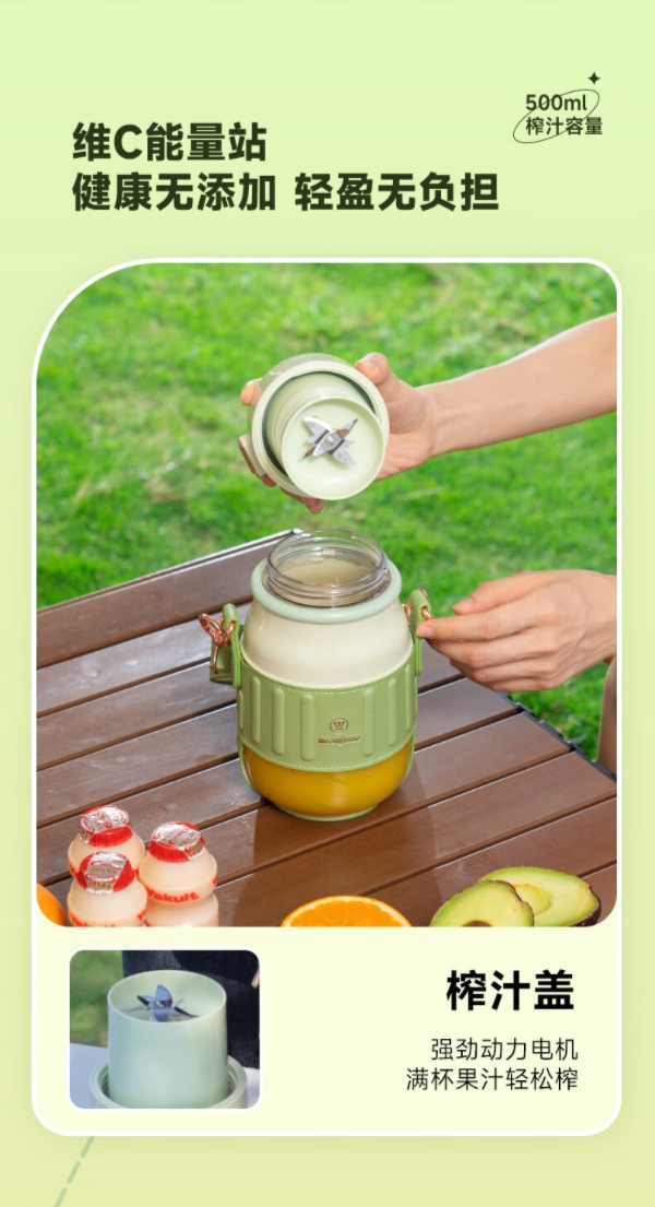 【美国西屋无线电动榨汁桶】西屋(Westinghouse)便携榨汁机无线电动榨汁桶充电果汁杯随行杯户外小胖吨杯