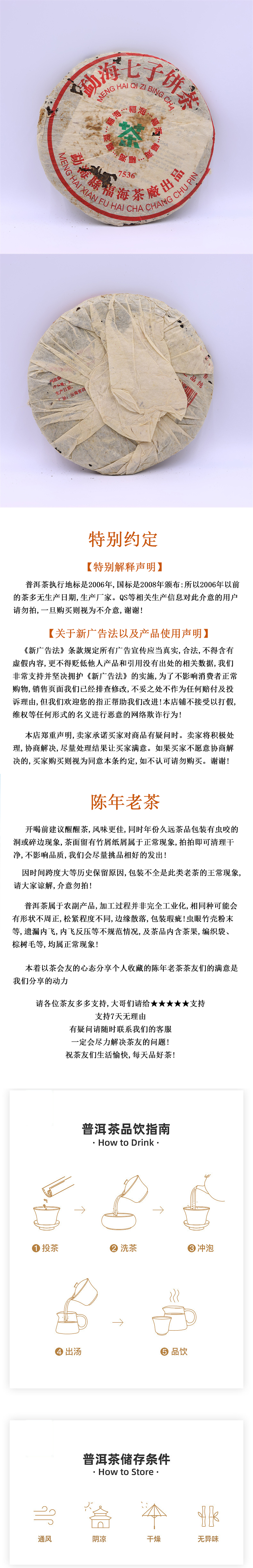 福海 2005年 7536普洱生茶 357g/饼