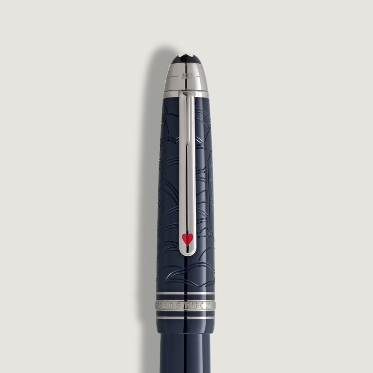 笔帽的设计灵感源自压力阀和火车头喷出的滚滚浓烟,而笔夹则采用覆以红色漆面的红桃花色,象征着菲利斯·福格与奥达公主的情谊。此外,纸牌花色还象征着福格在短短80天内完成旅程的无畏赌注。笔唱顶端饰有旅程时间表压花图案,其中包括从横滨到伦敦的36天旅程,最终以总计80天的环球旅行园满收官。