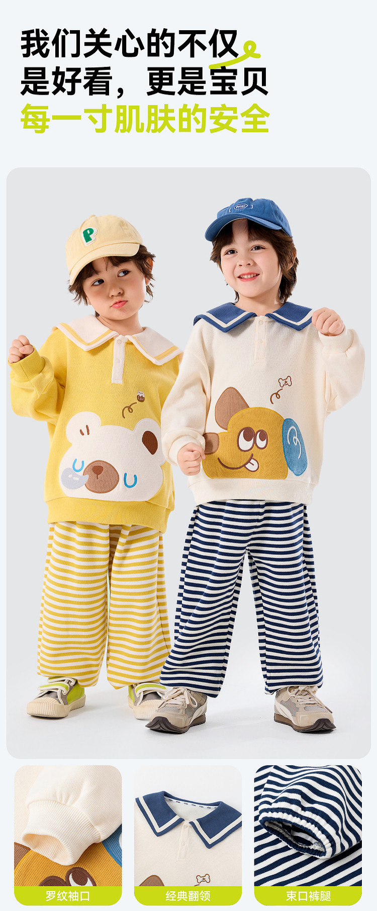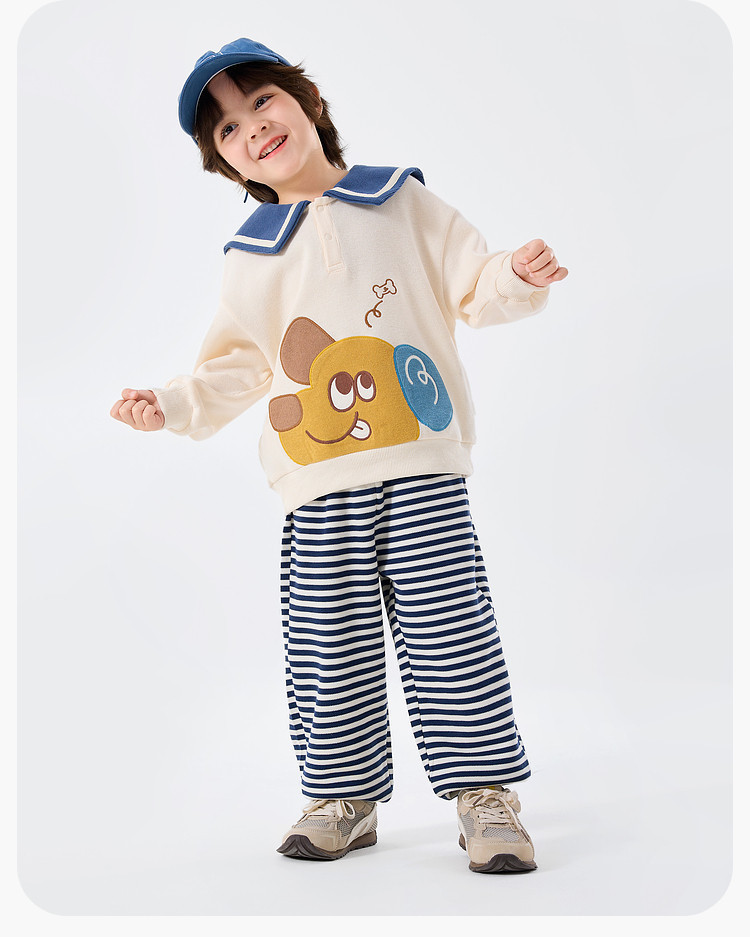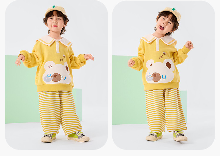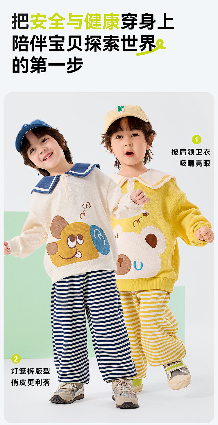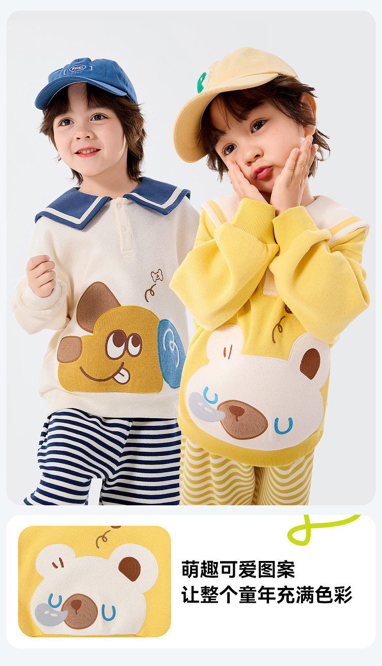 嘟嘟家宝宝娃娃领套装春季新款男童上衣裤子两件套女童衣服春款潮D6ATZ148