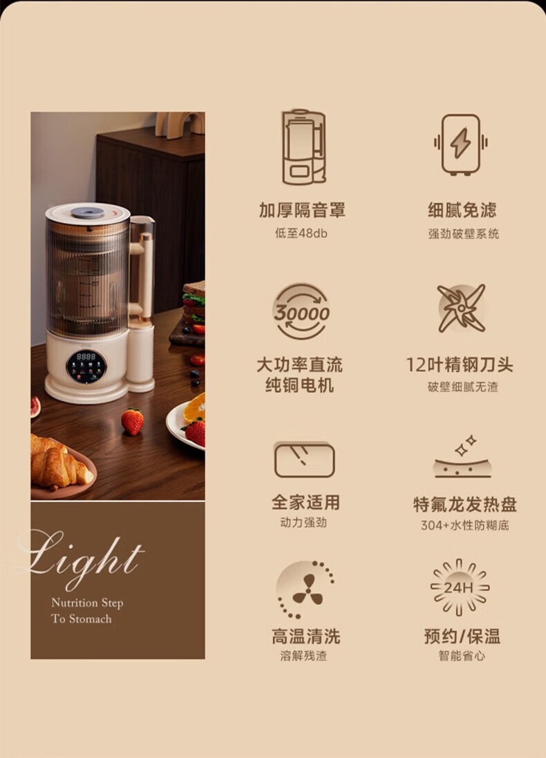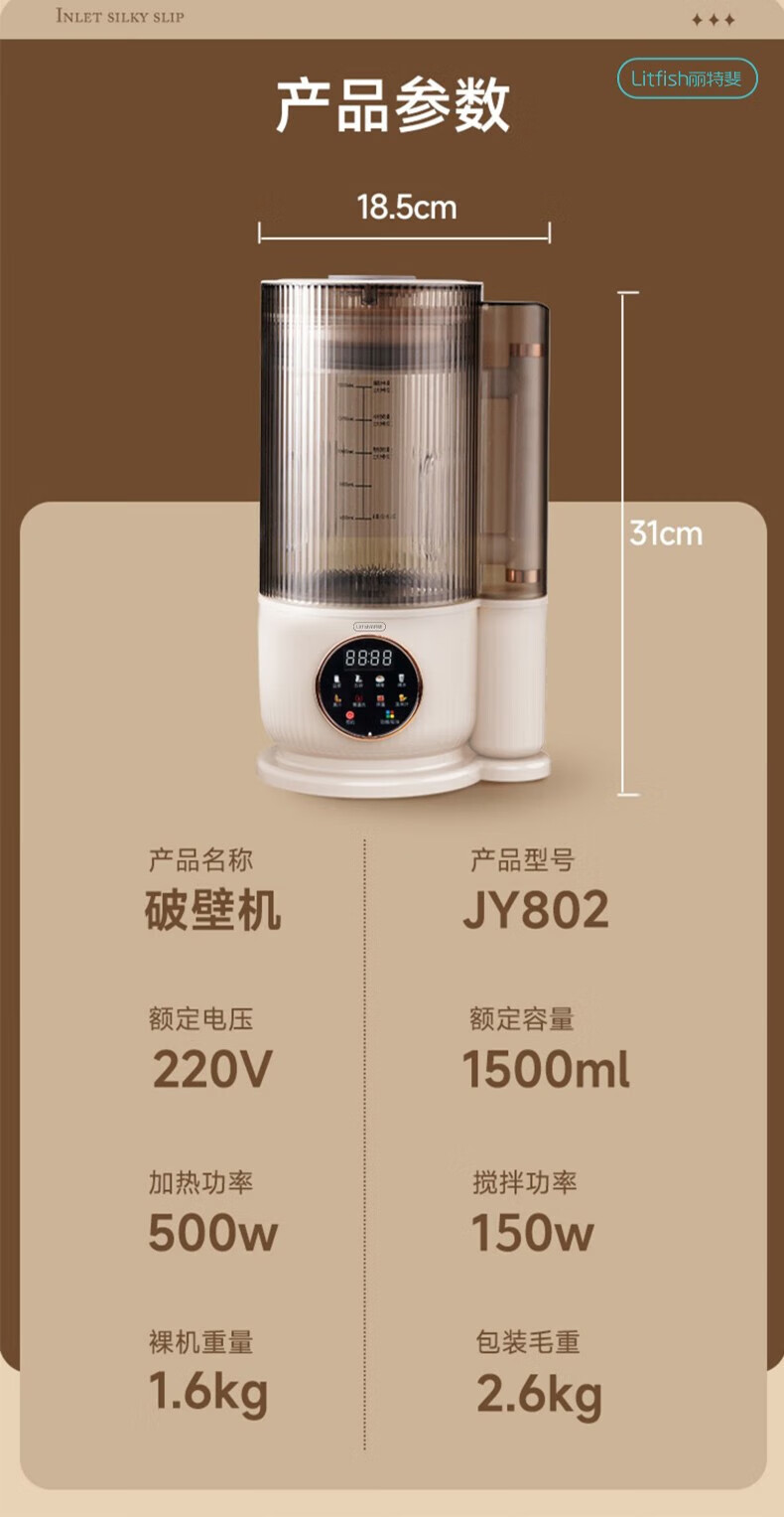 【小家电】丽特斐静音破壁机家用加热全自动多功能料理机JY-802 HF