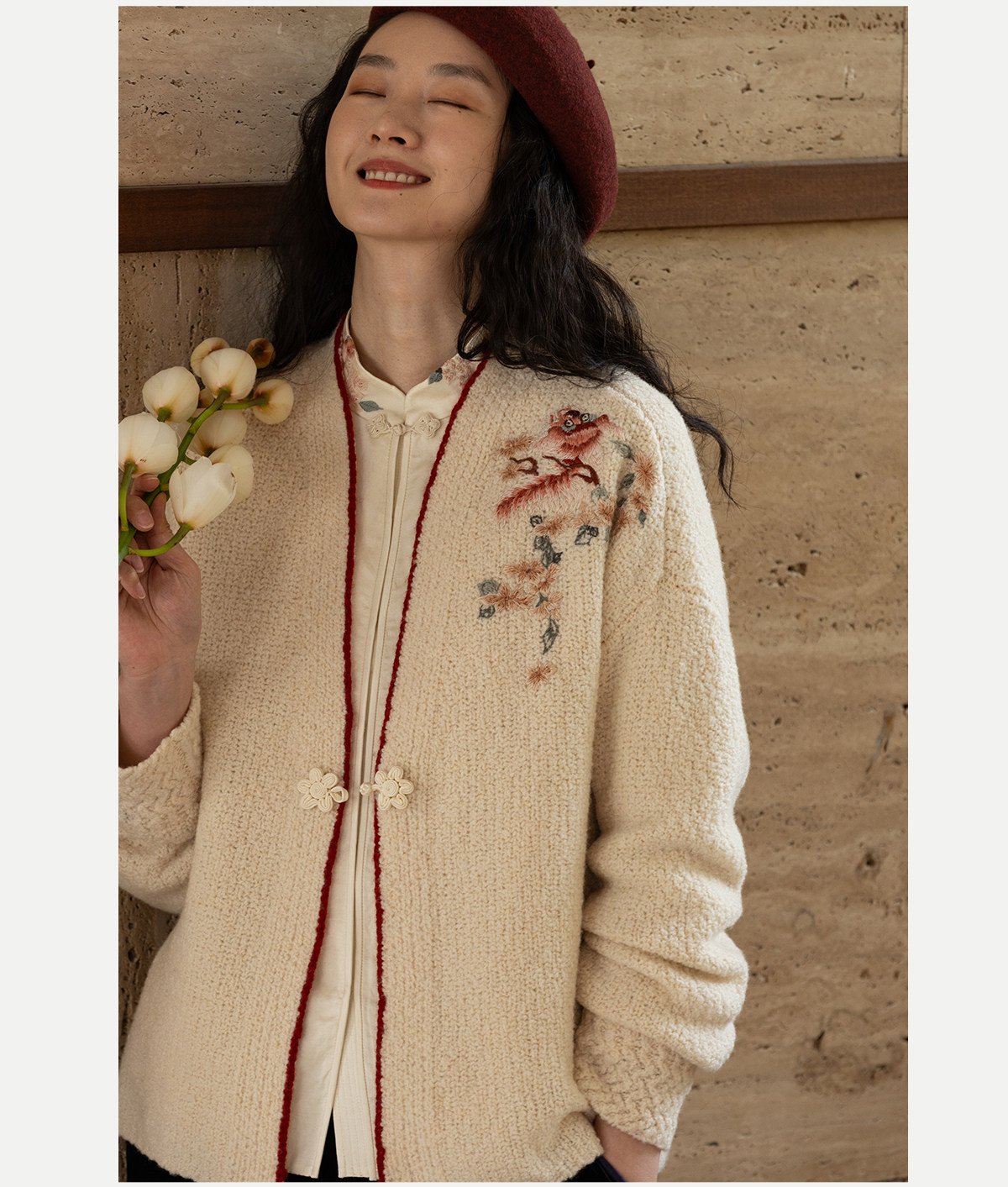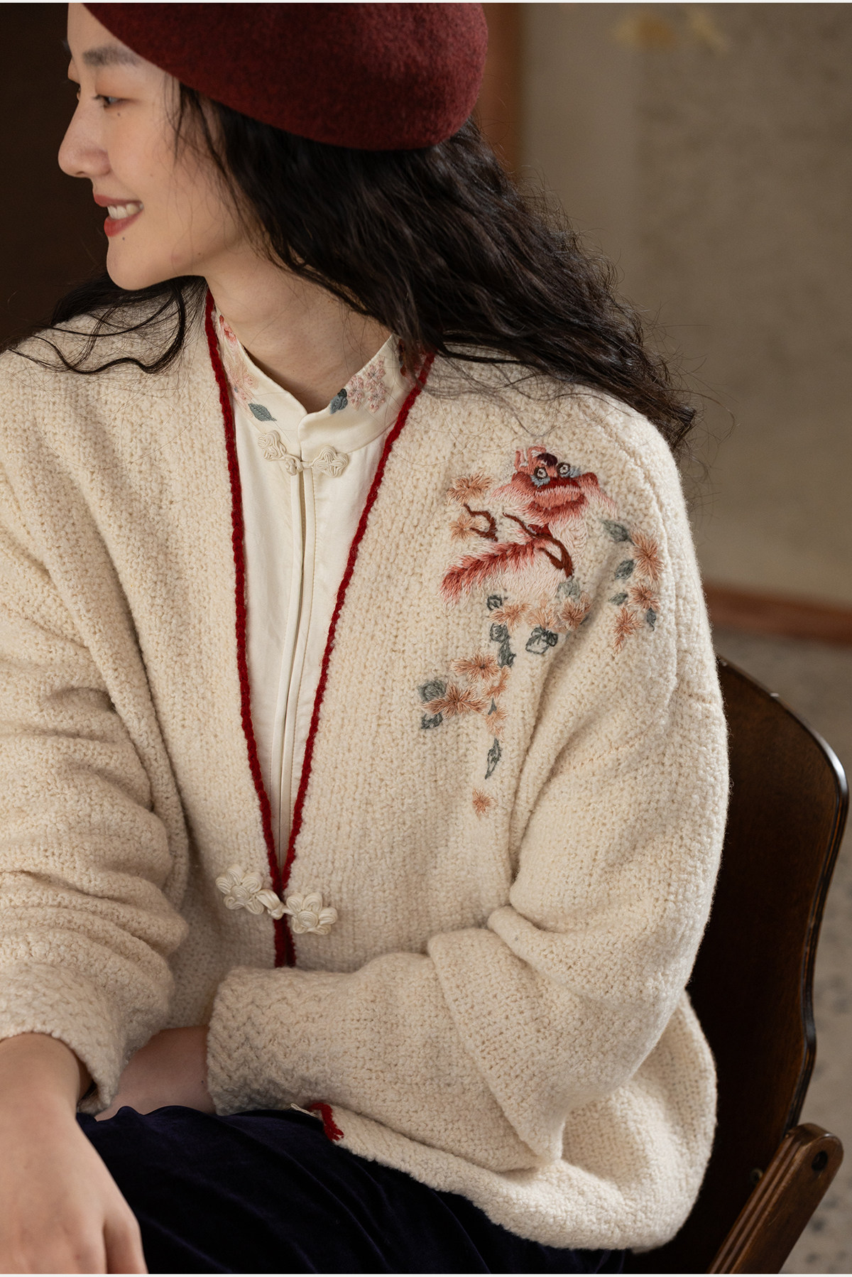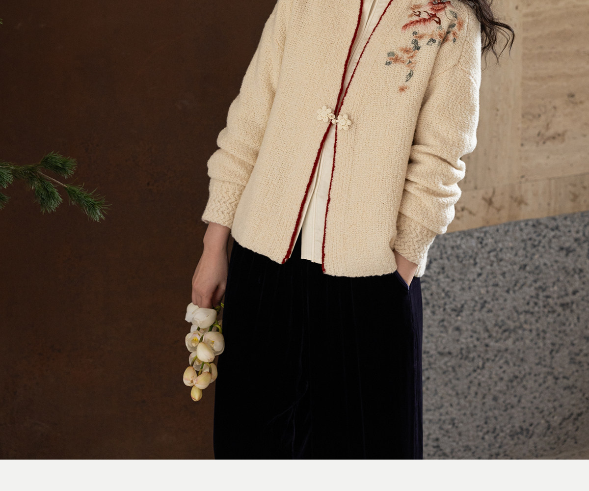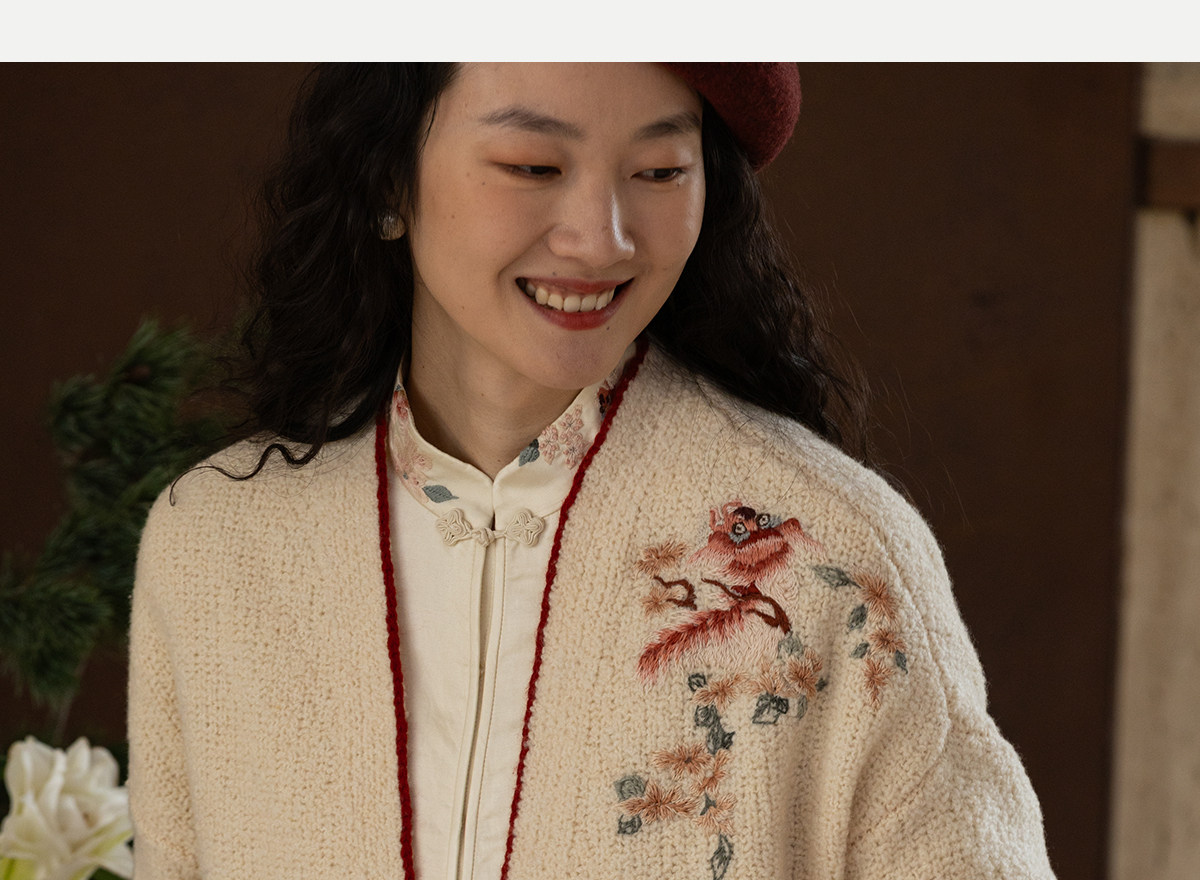 牧衣游原创 手工刺绣毛织短外套新款柔软轻盈宽松百搭开衫 星河落