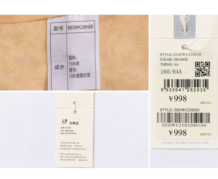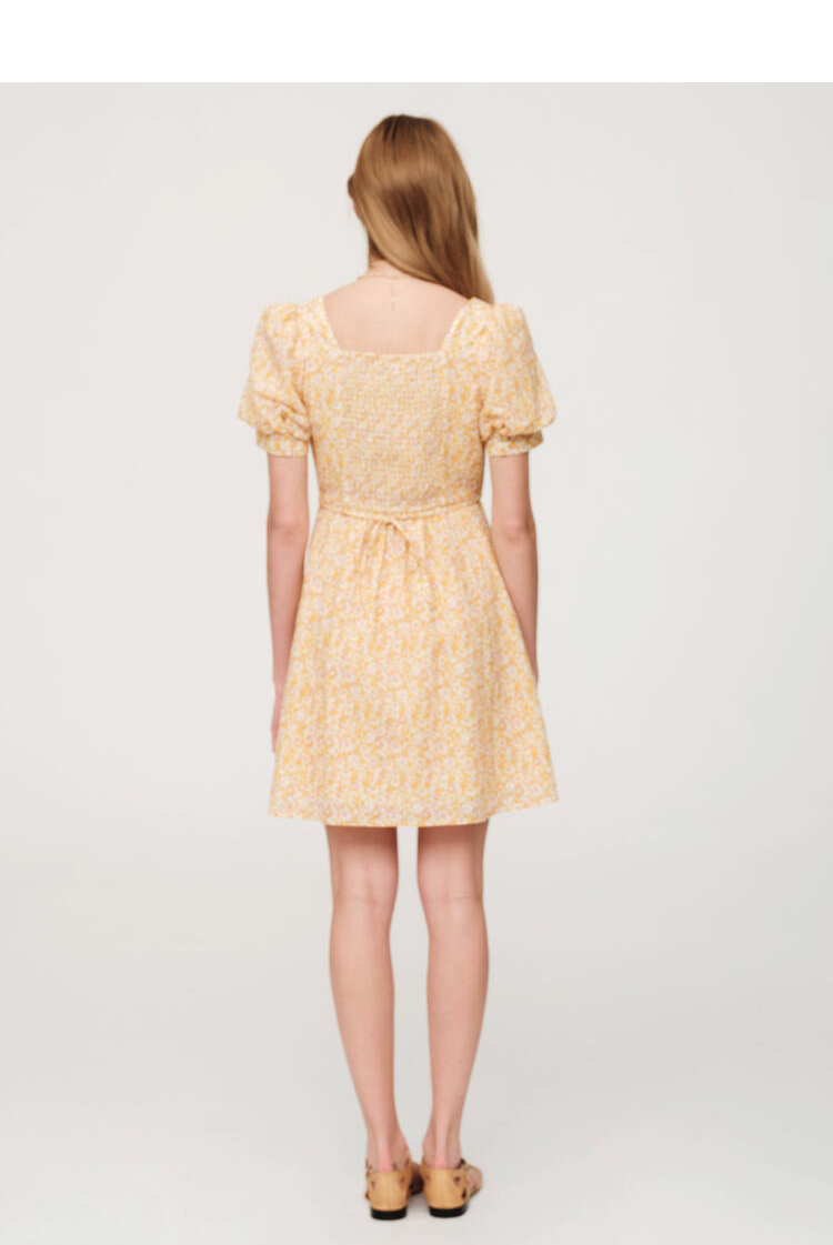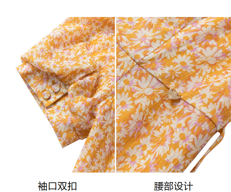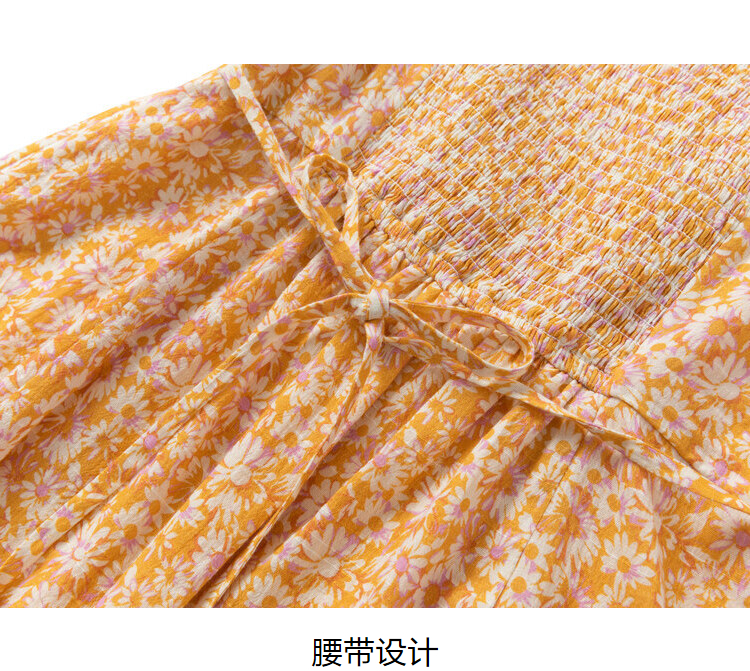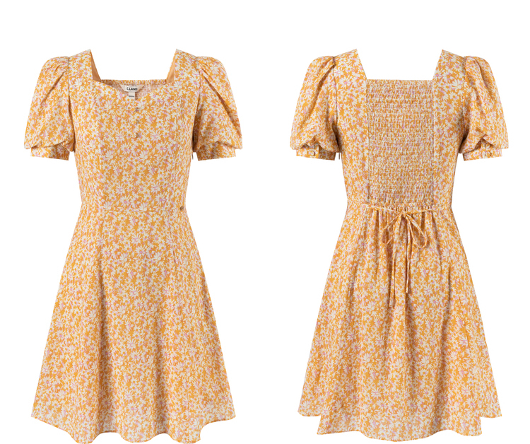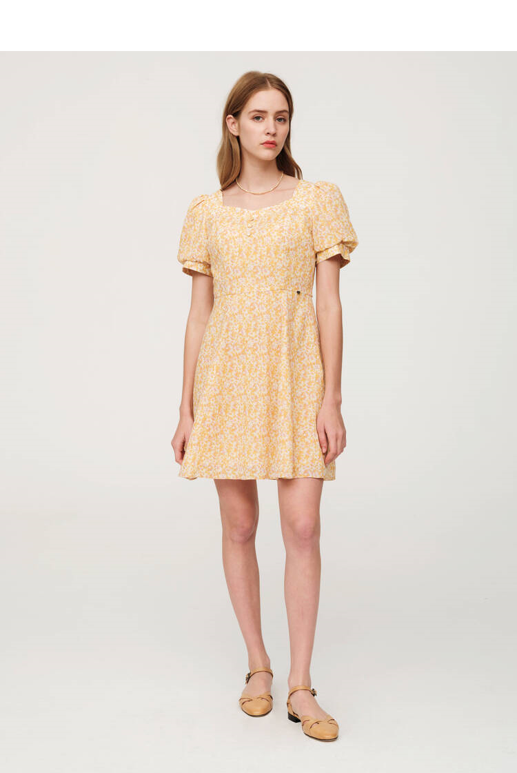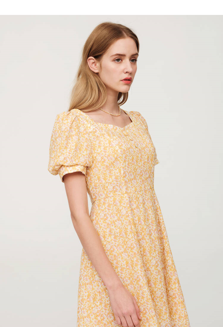 ELAND衣恋2022年春新款女士小众泡泡袖洋气肌理感短袖碎花连衣裙EEOWC25H2D
