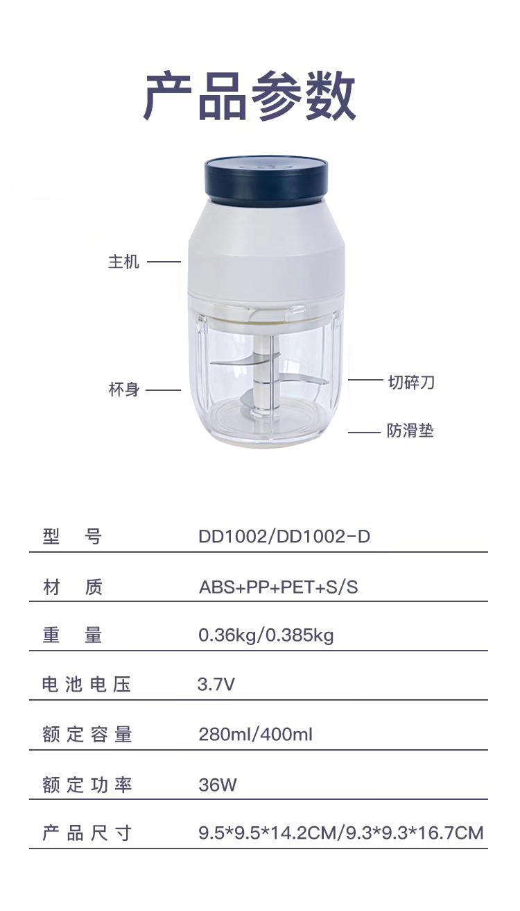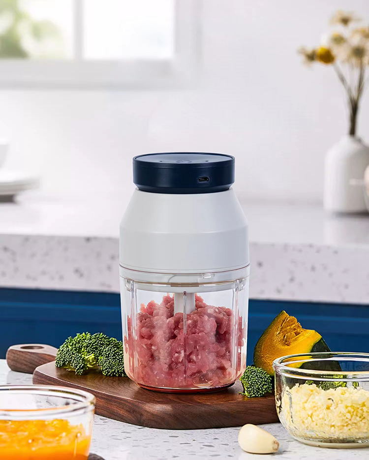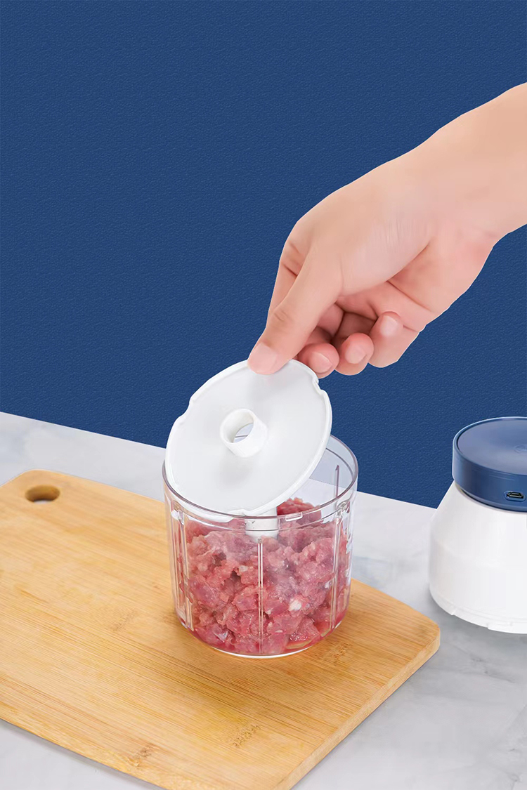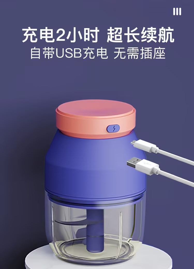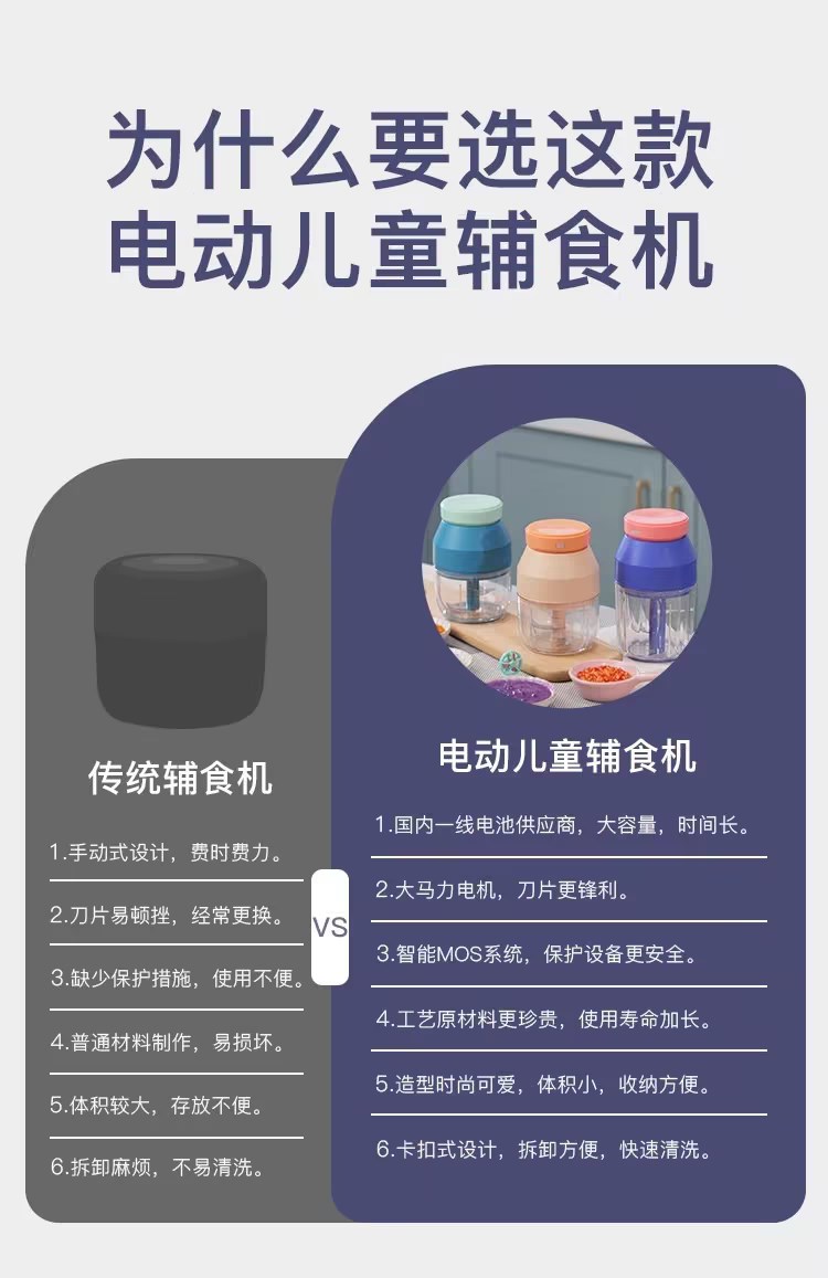 幸福妈咪迷你电动便携式厨房料理机儿童辅食机绞肉机(蓝白色)