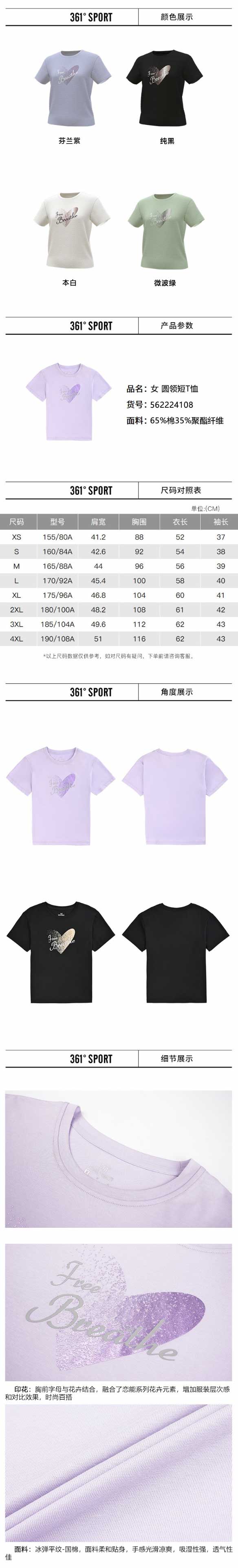 361度T恤女装短袖字母新品2022夏季运动衫透气圆领上衣562224108