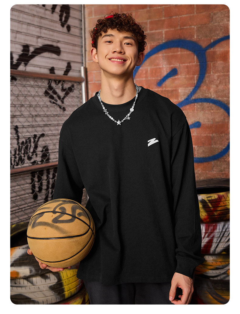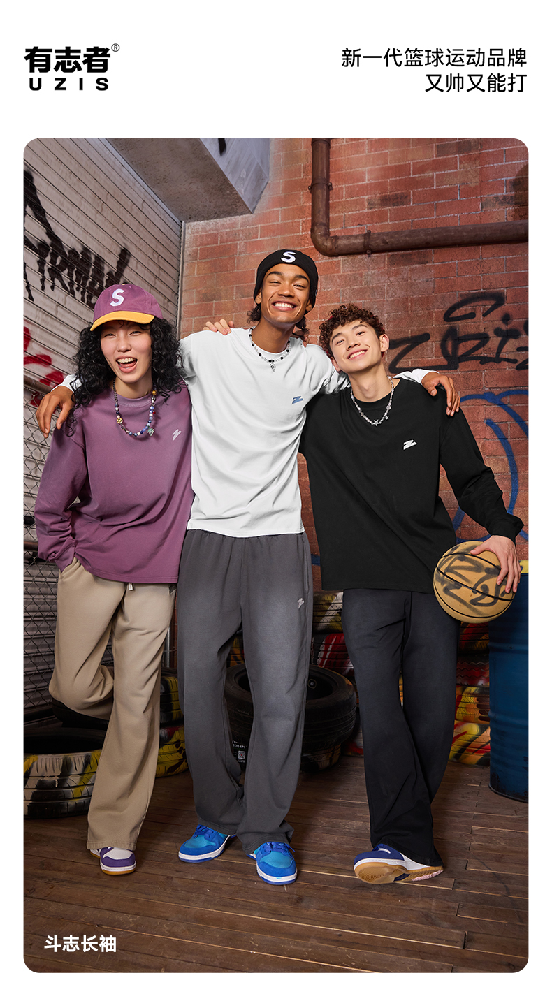有志者UZIS 美式篮球运动长袖男秋季纯棉透气潮流休闲打底T恤斗志