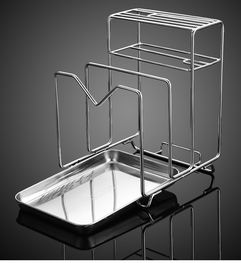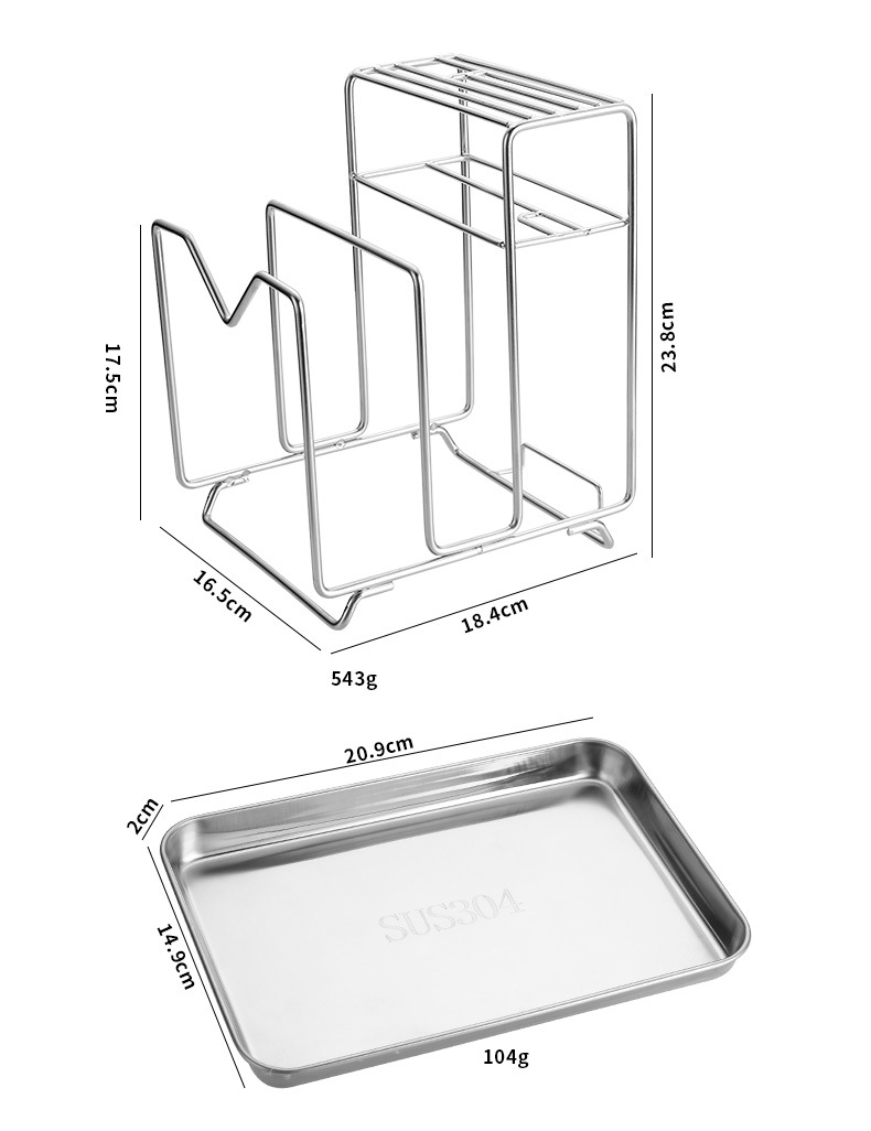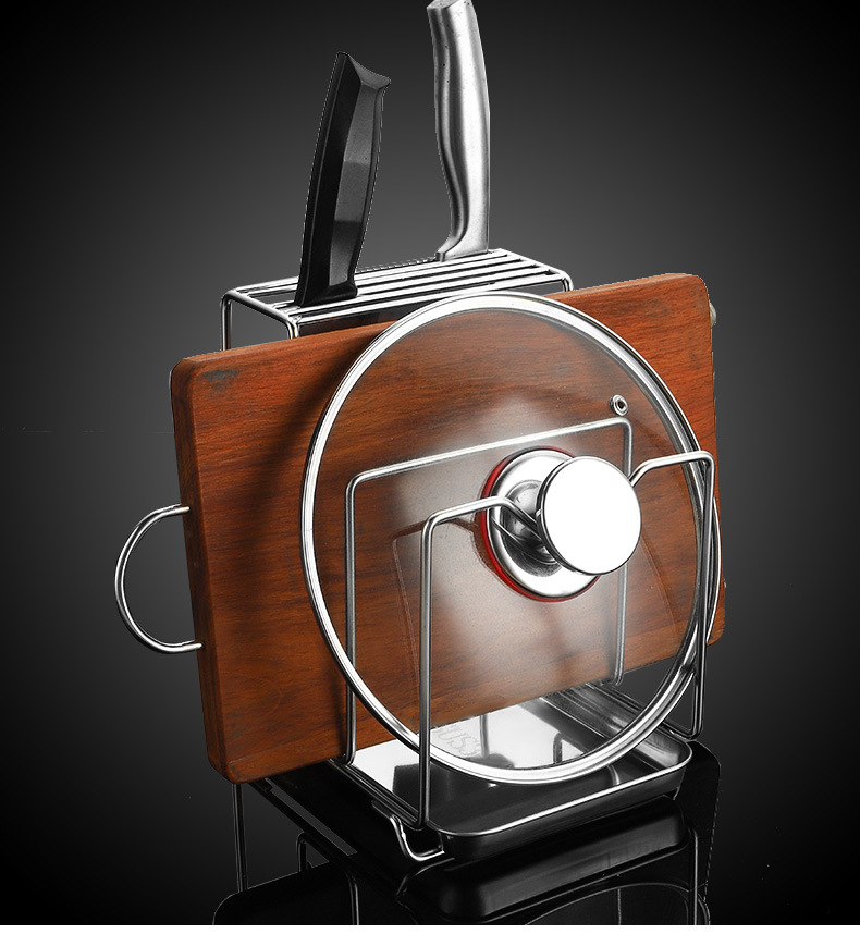【跨境出口德国不锈钢刀架菜板架】跨境304不锈钢刀架 多功能置物架家用厨房锅盖菜板收纳架子沥水盘