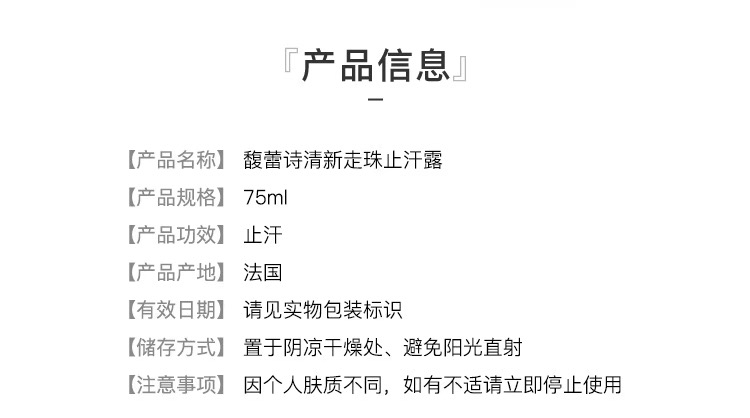 Fresh馥蕾诗黄糖走珠止汗露75ml 淡香滚珠 清新腋下