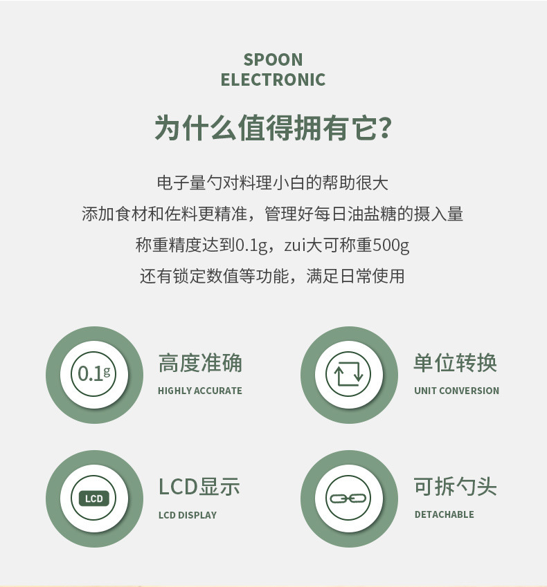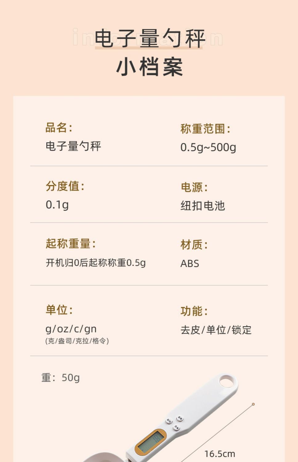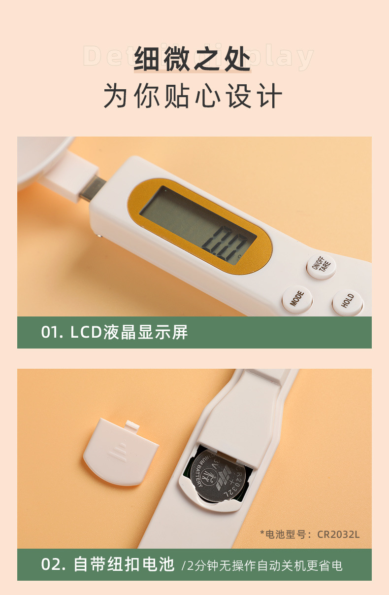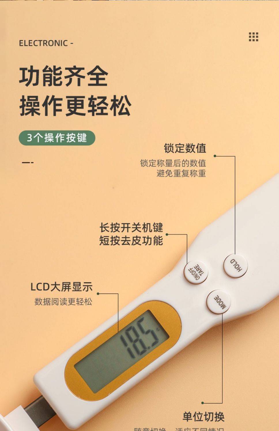 【电子量勺高精度0.1g】功能齐全操作更轻松,电子秤量勺秤厨房必备,高精度计量勺烘焙奶粉调料辅食勺刻度称重勺