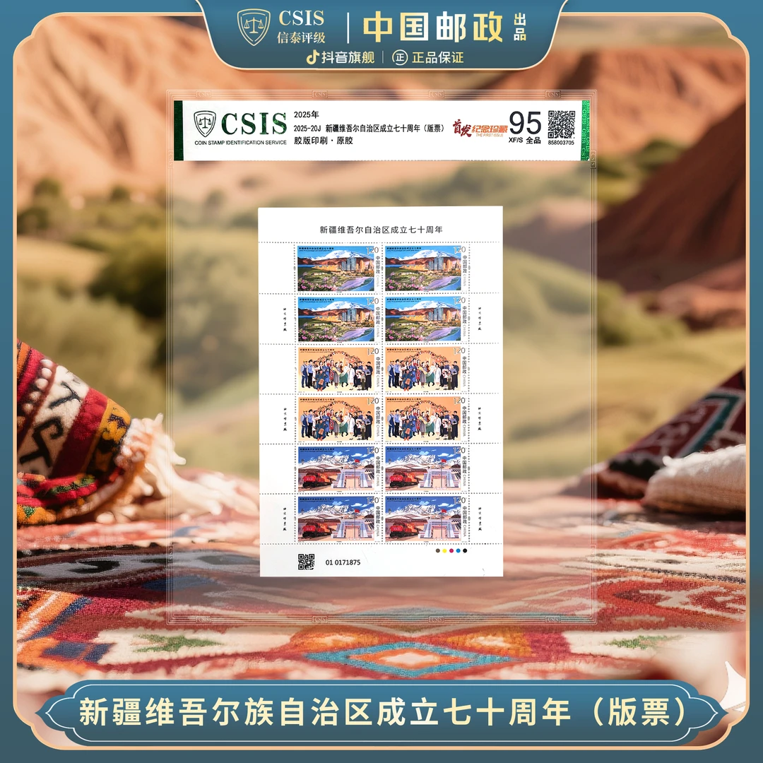 【新邮首发】2025年新疆自治区成立70周年邮票版票片材(信泰评级)