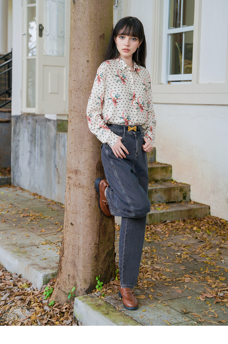谜底花色衬衫长袖女2025秋季新款通勤复古印花亲肤衬衣257MC7855