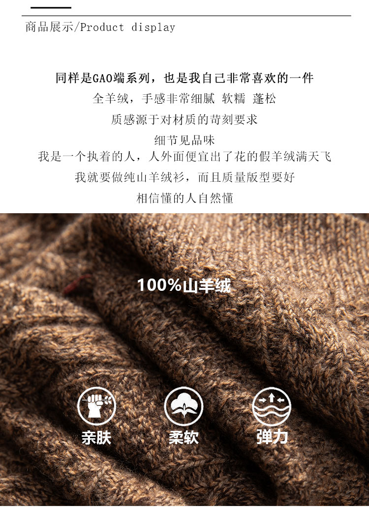 经典返场~重磅加厚100%纯山羊绒翻领开衫男青果领外套CYR250323
