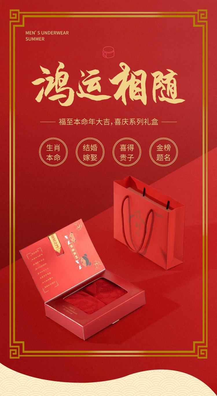 礼盒装本命年男士大红内裤发财男士红内裤结婚礼物莫代尔内裤男盒装批发