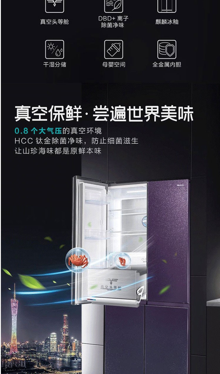 Hisense/海信 BCD-555WTDGVBPIV十字对开四门真空保鲜电冰箱一级