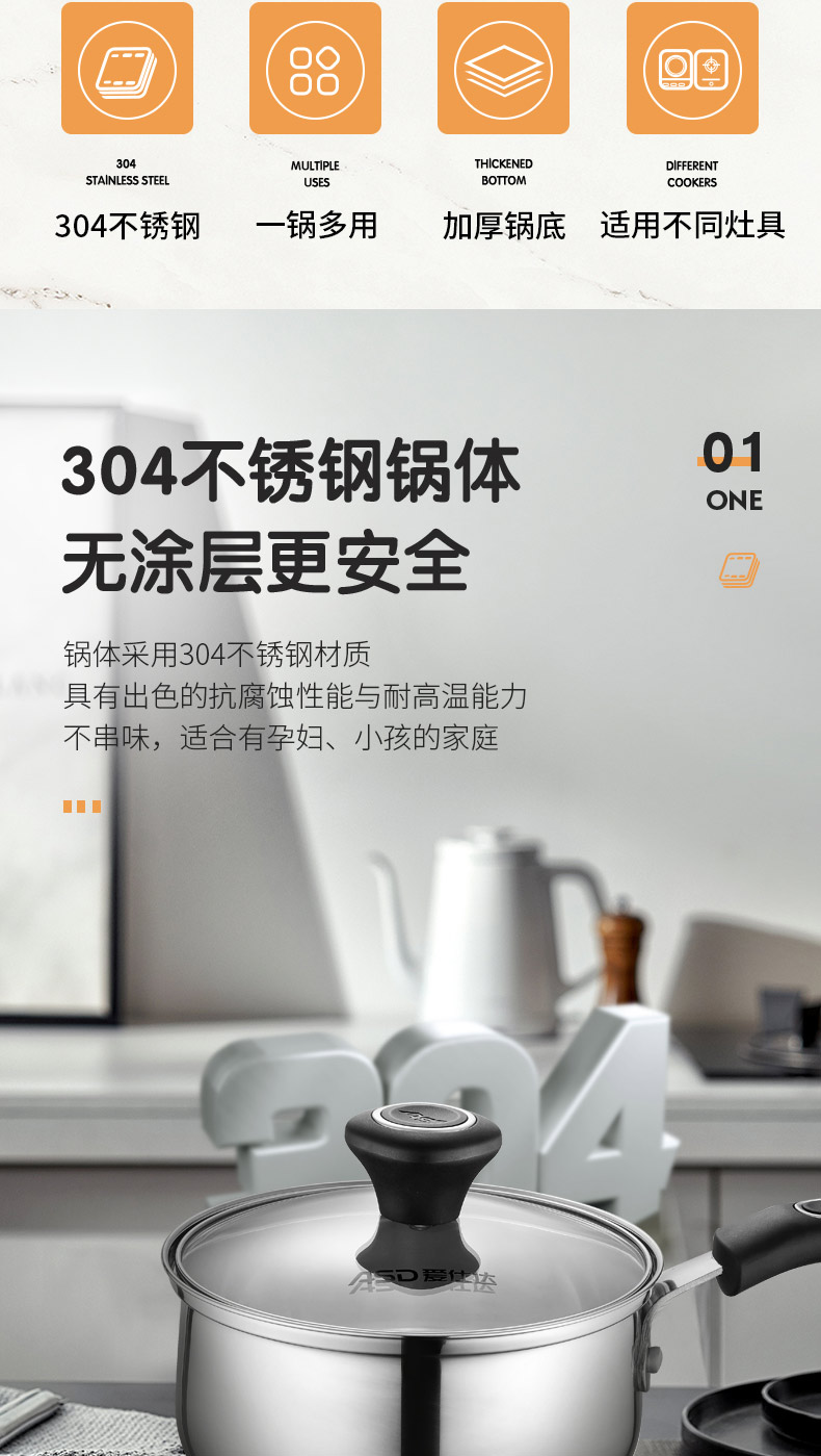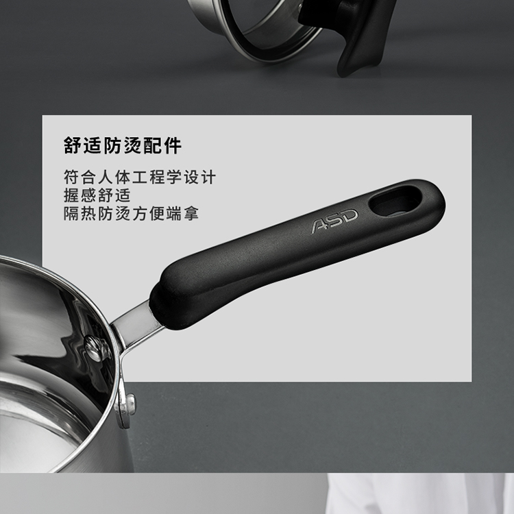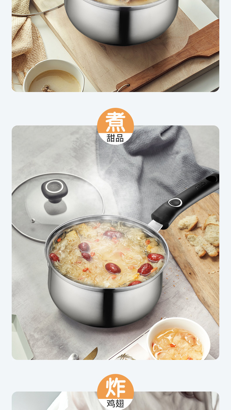爱仕达奶锅304不锈钢泡面牛奶锅家用燃气电磁炉宝宝辅食锅小汤锅NS16B1WG
