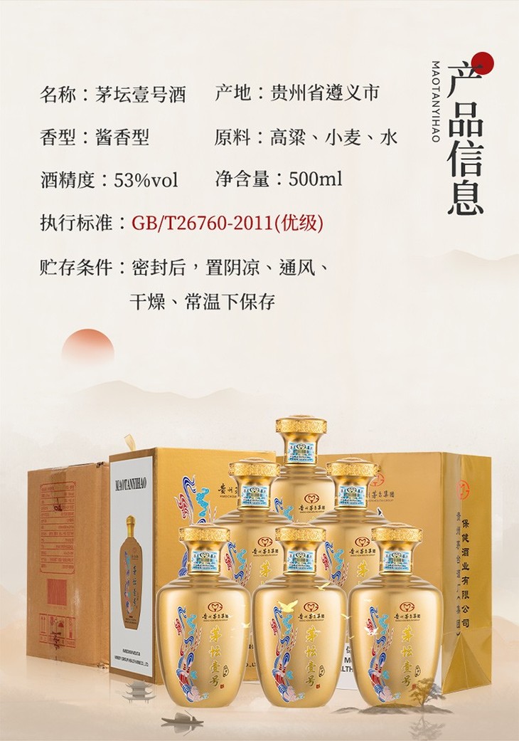 【现货】贵州茅台集团 茅坛壹号 酱香型 53度 500ml*6(新老包装随机发货)