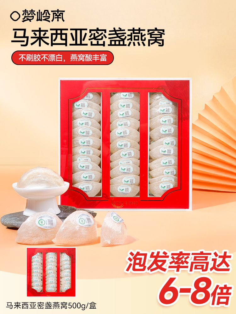 【密盏燕窝 一人食两人补】梦岭南马来西亚进口燕盏燕窝 孕妇滋补 产后修复 养颜 长辈滋补送礼佳品礼盒装 500g/盒