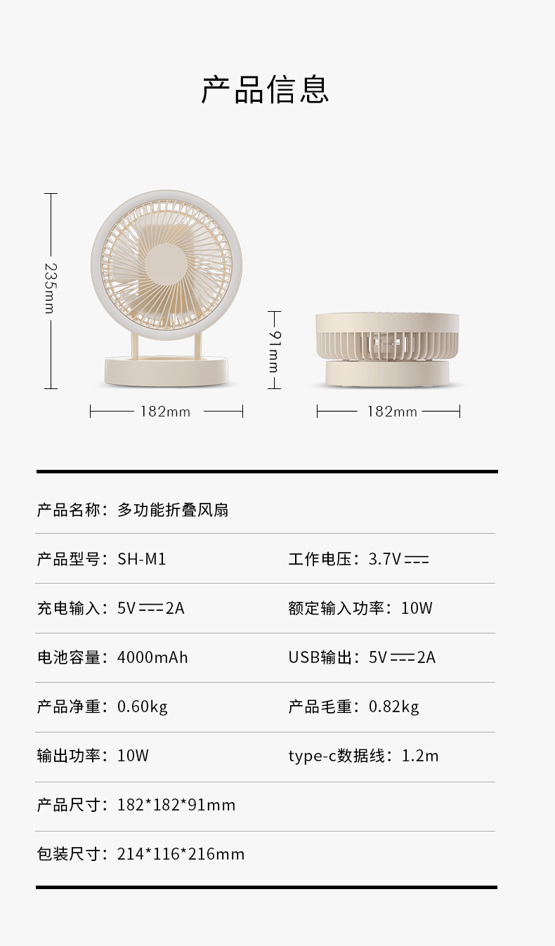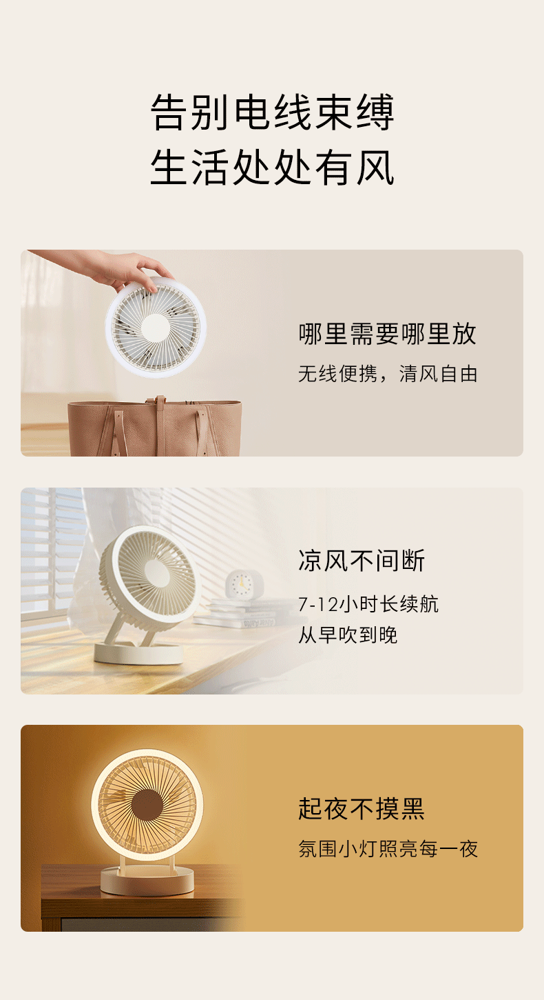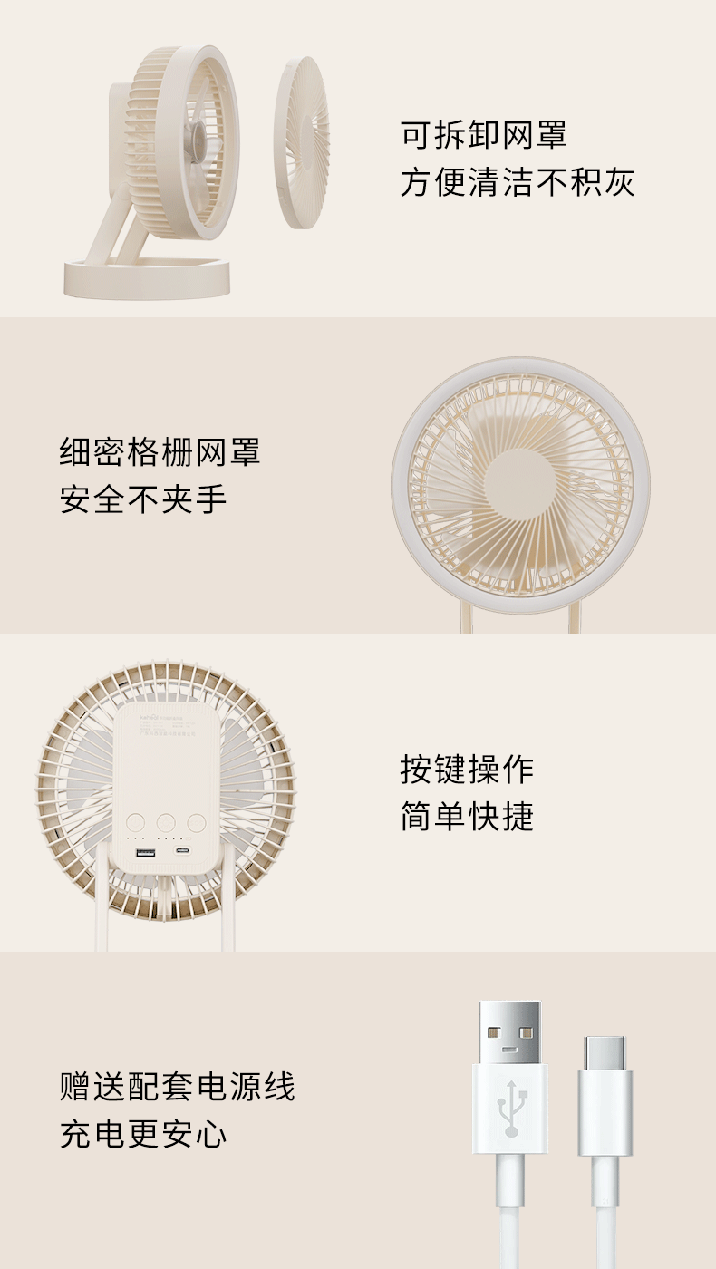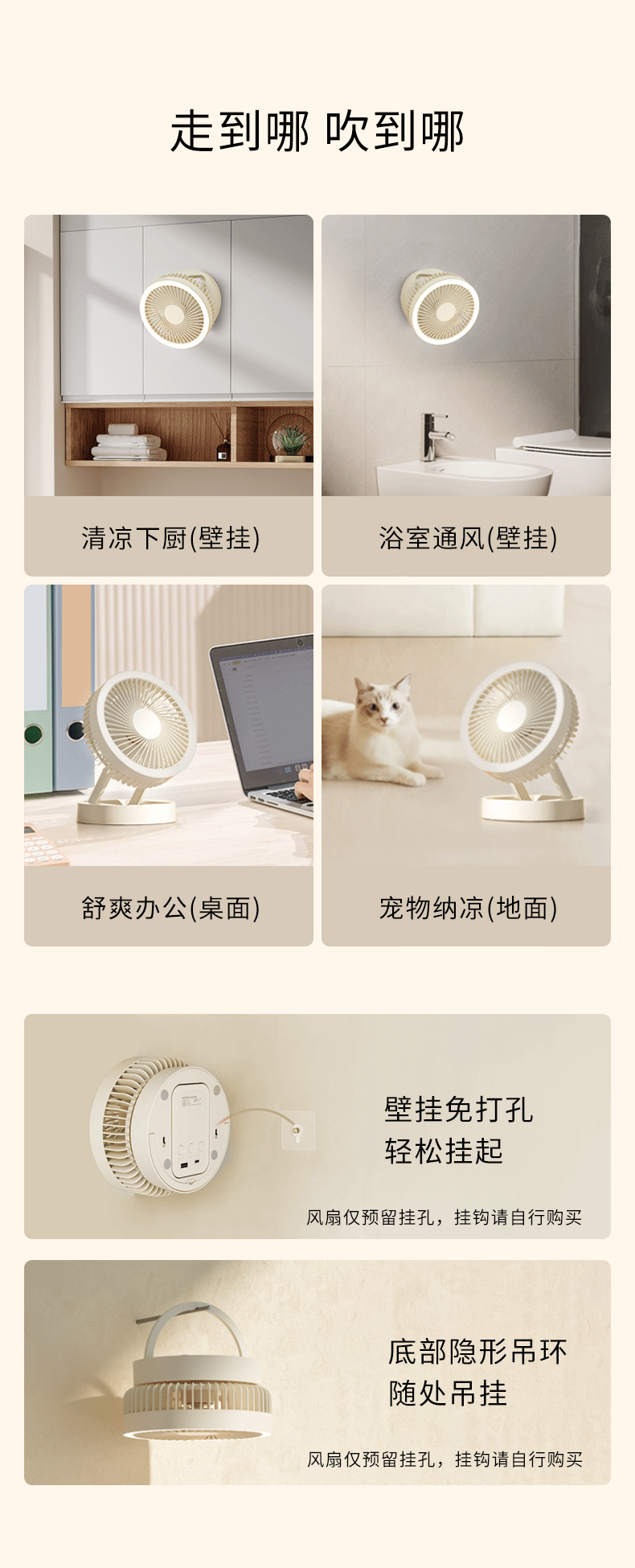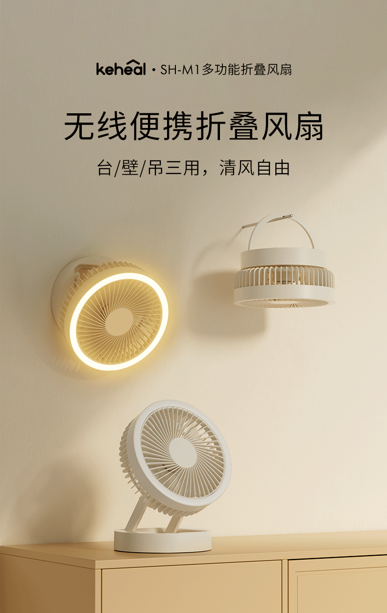 【科西】多功能折叠风扇 家用台式壁挂 桌面小型带灯电风扇 露营