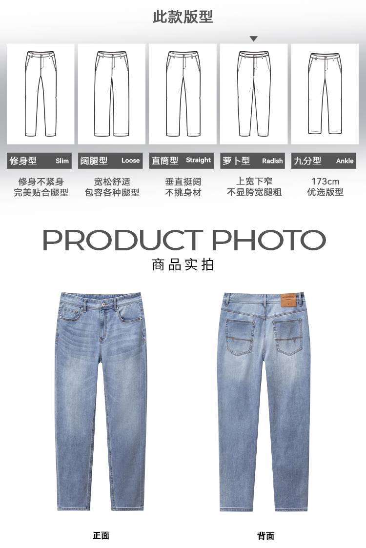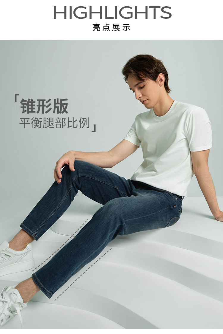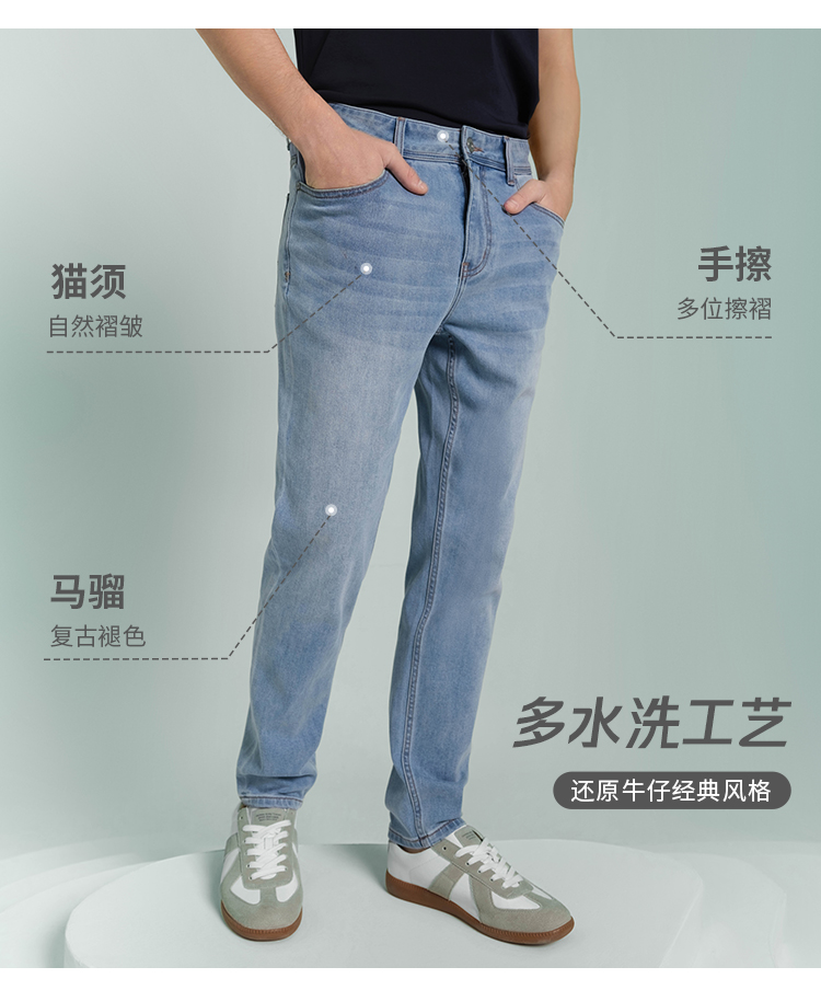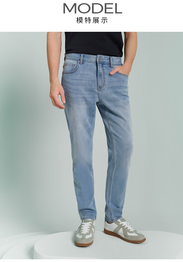 会员-拇指白小牛舒凉锥形牛仔长裤无限系列