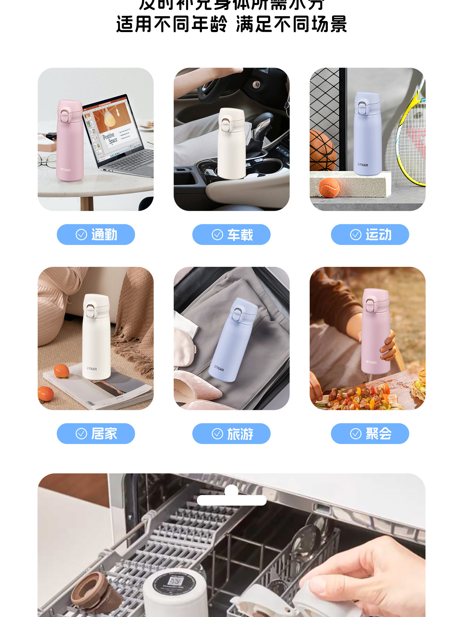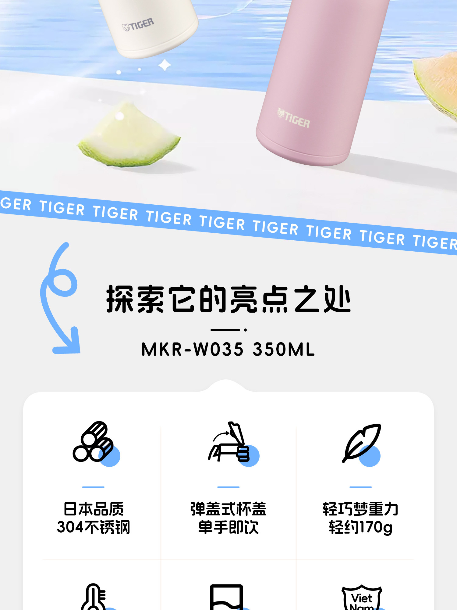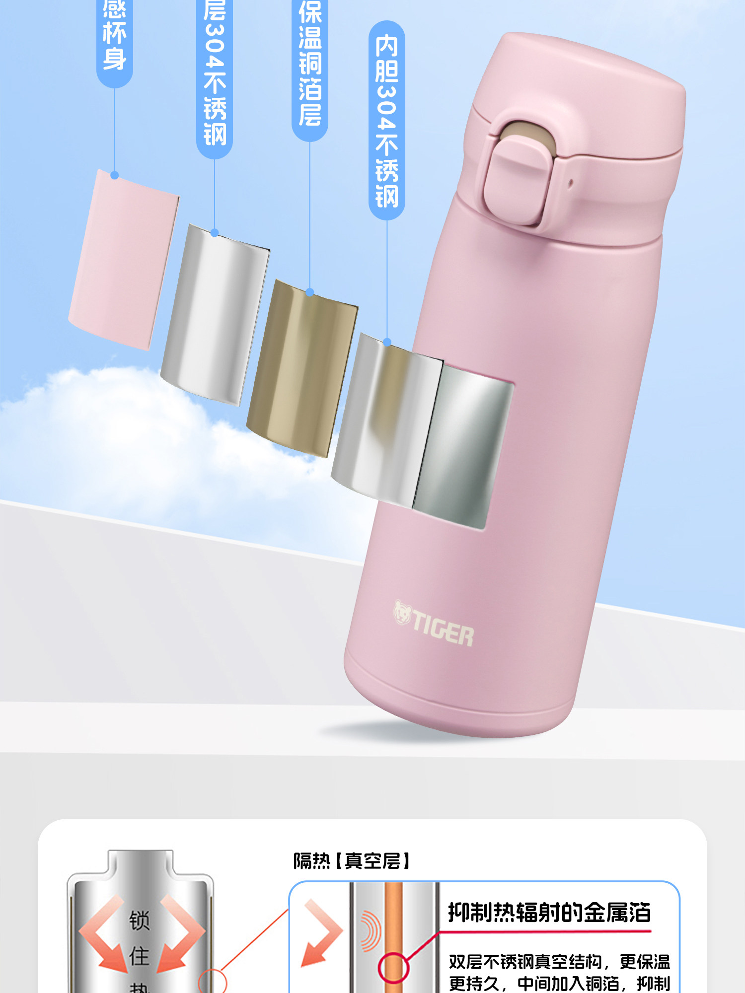 TIGER 虎牌 不锈钢真空杯 MKR-W035 PR 玫瑰粉 350ml