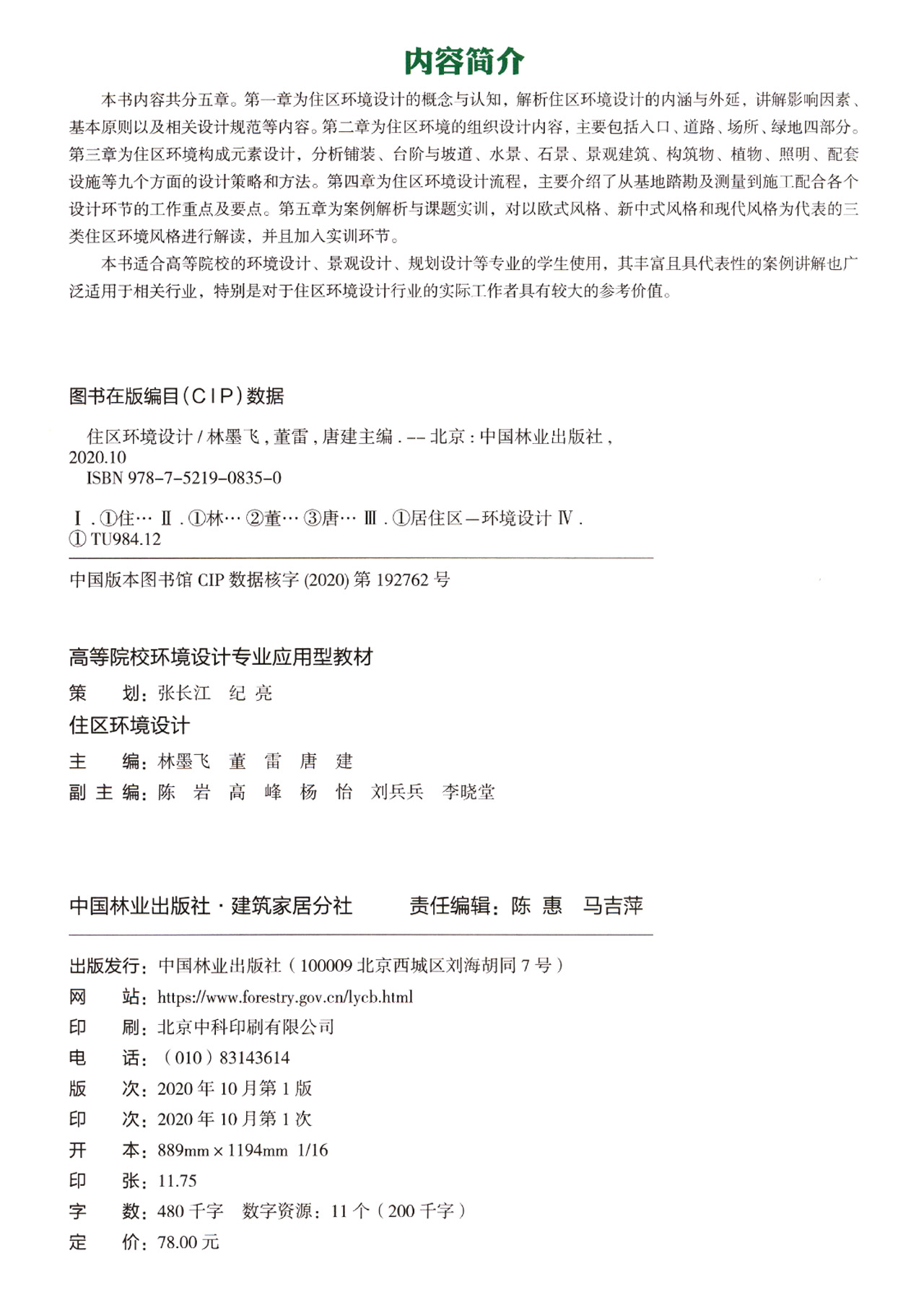 住区环境设计(高等院校环境设计专业应用型教材) 林墨飞//董雷//唐建 0835 中国林业出版社
