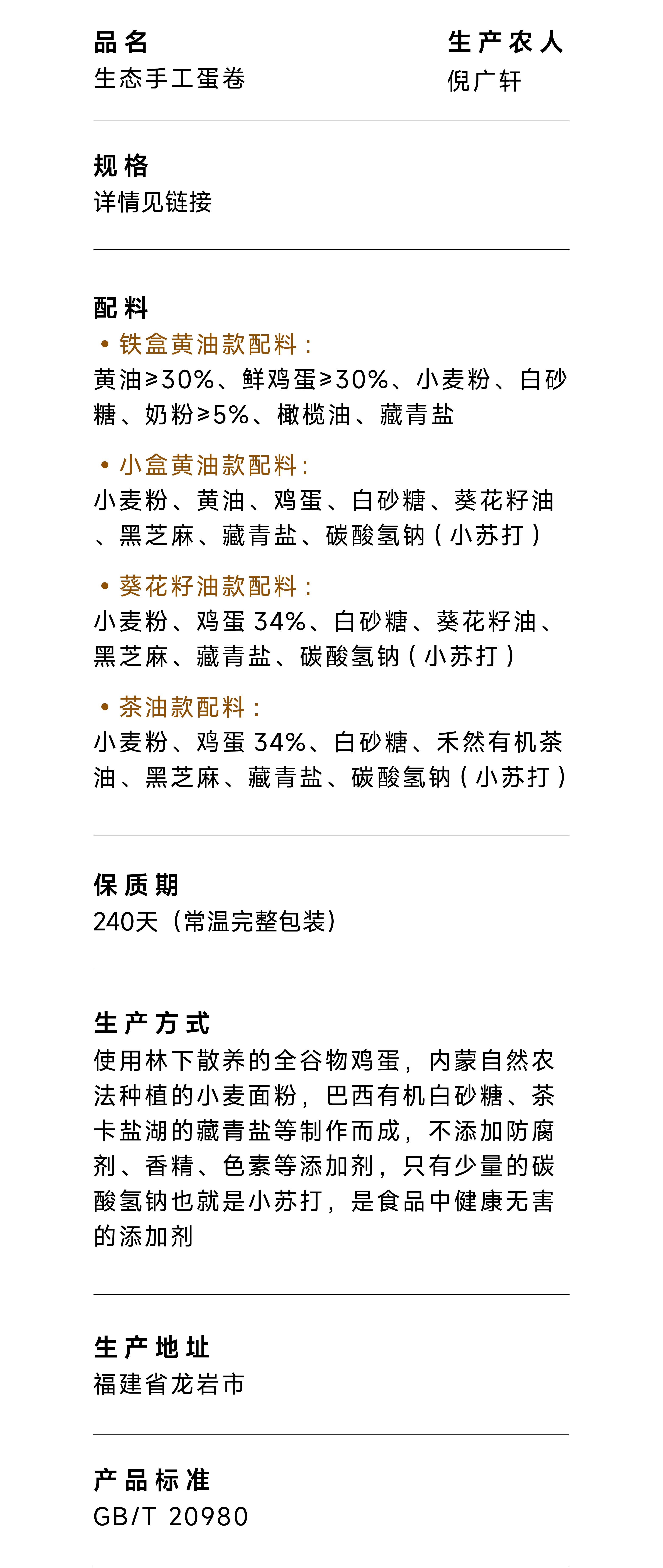 生态手工蛋卷 | 合作农友生产,产自福建龙岩,生产者:倪广轩 *【公平贸易农人定价】