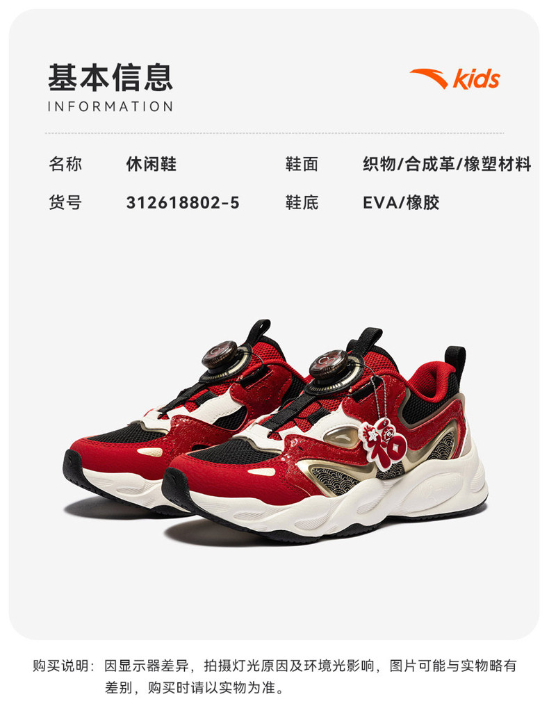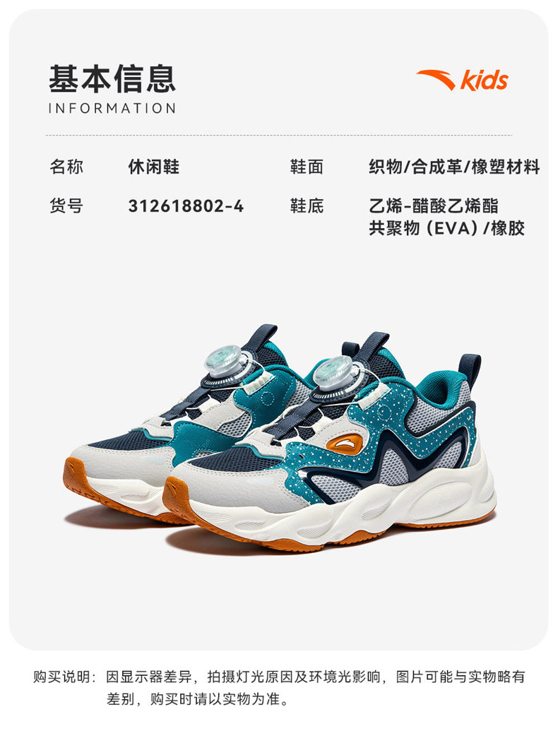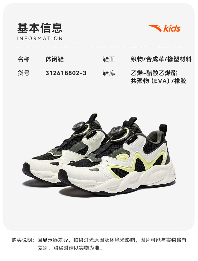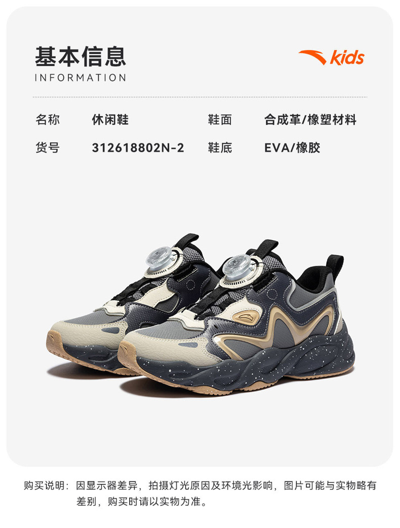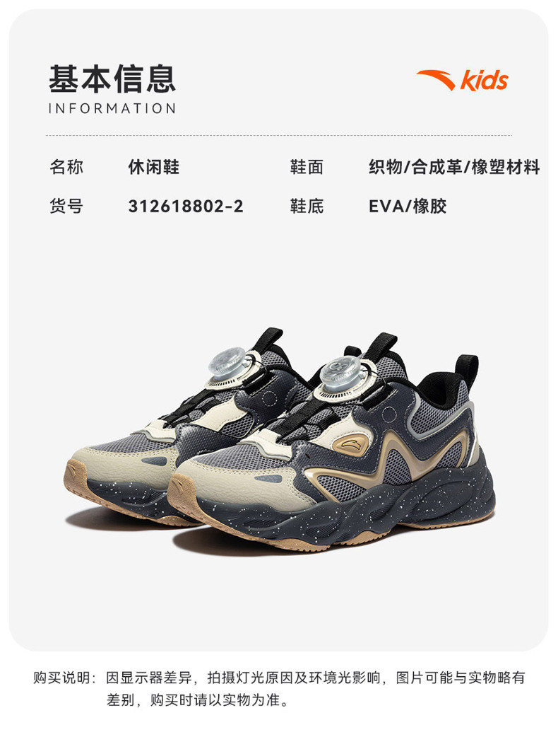 星芒丨安踏儿童运动鞋2026新款犟弹旋钮户外老爹鞋休闲鞋男童跑鞋312618802N