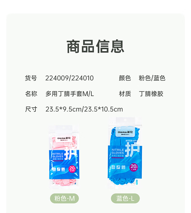 茶花 手套 多用丁腈手套M号 20只*2袋装