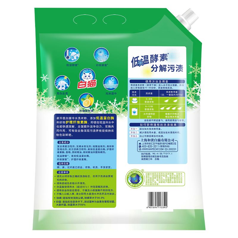 【甄选】白猫冷水速洁无磷洗衣粉3kg