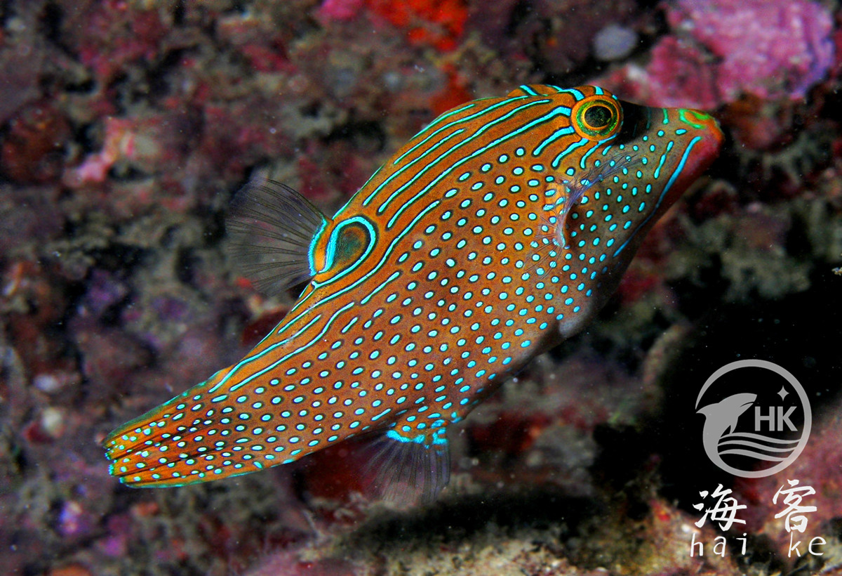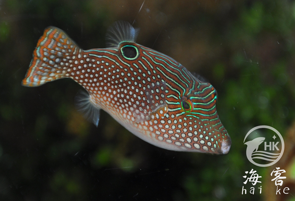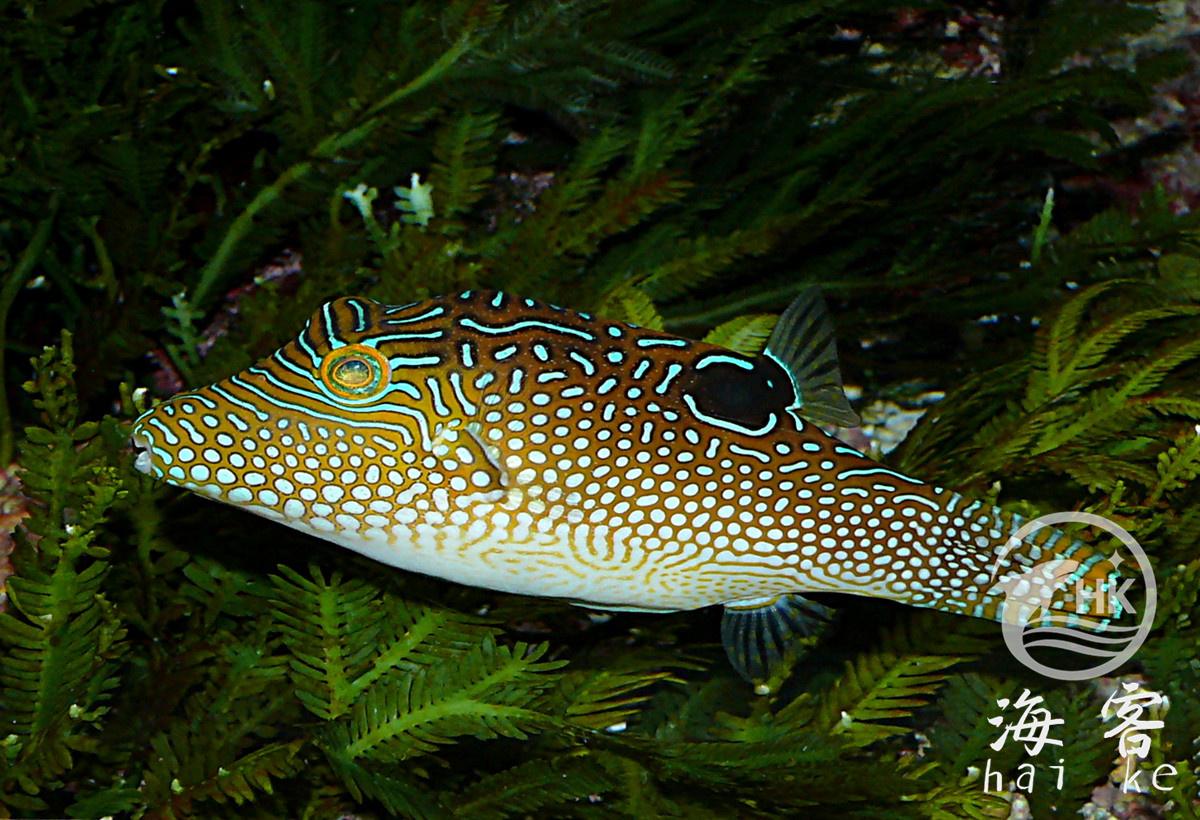 台湾俗名:眼斑扁背魨、尖嘴规、规仔,大陆名:细斑扁背鲀、蓝点鲀。这个种属的鱼没有腹鳍,但可以学会使用胸鳍来控制方向。