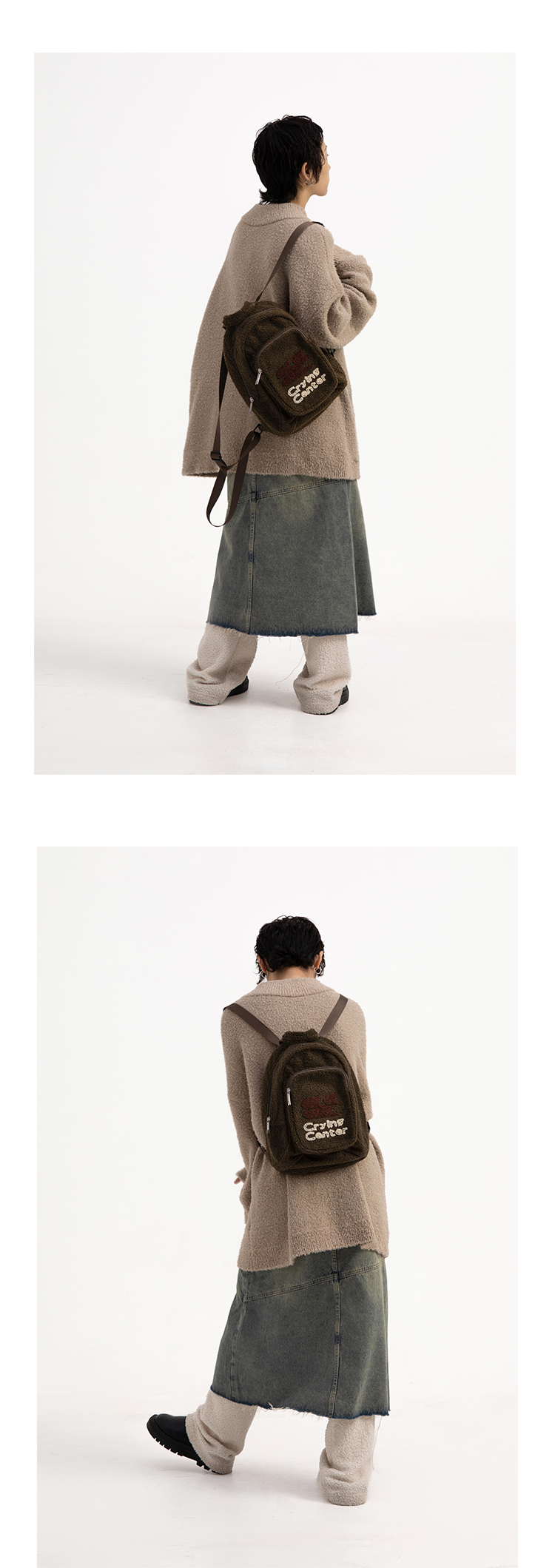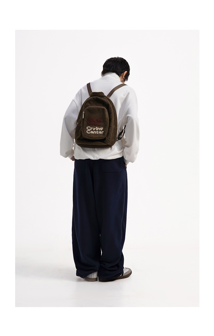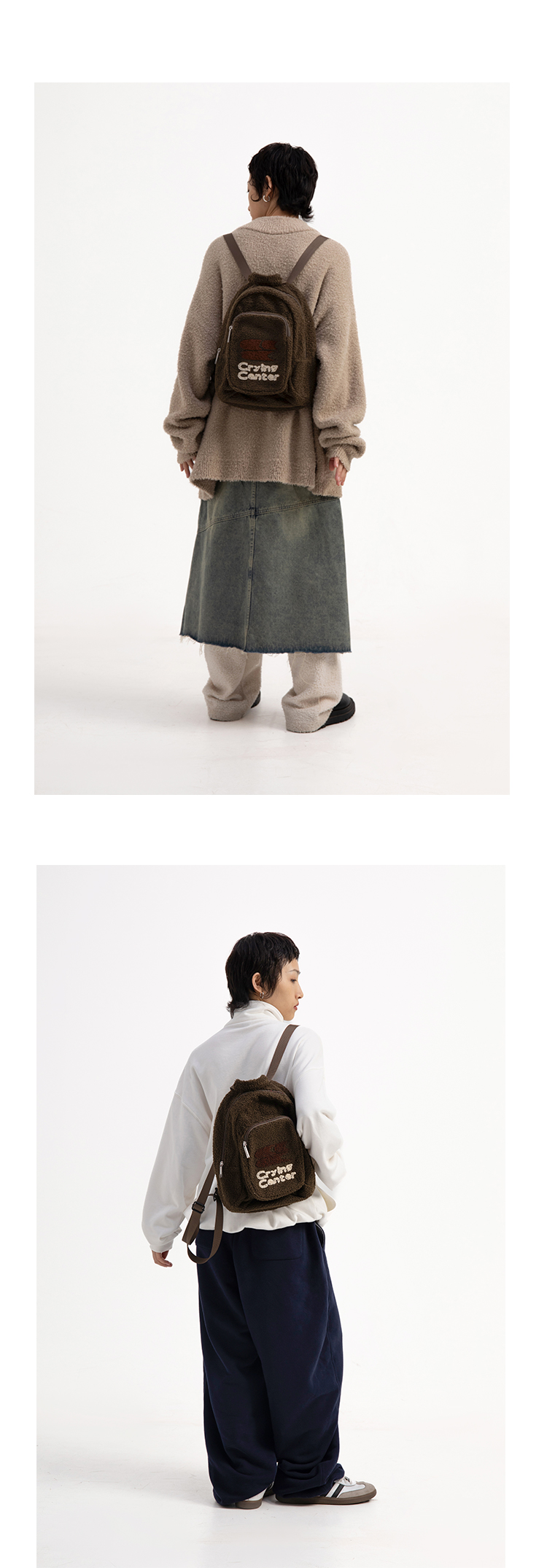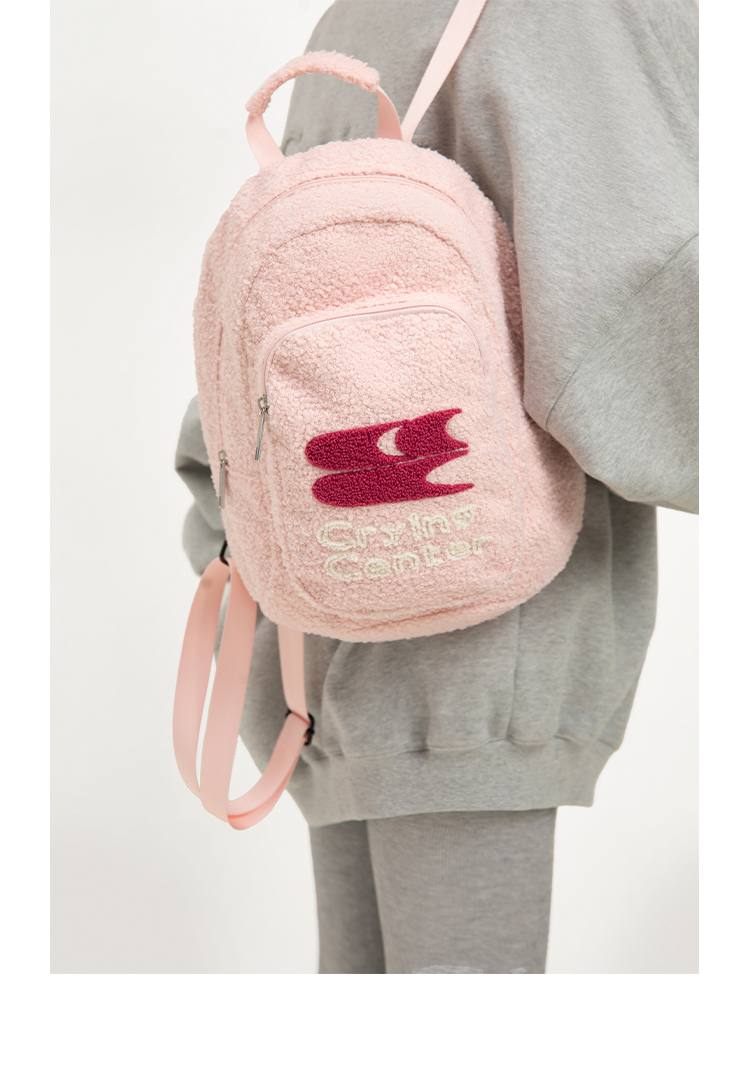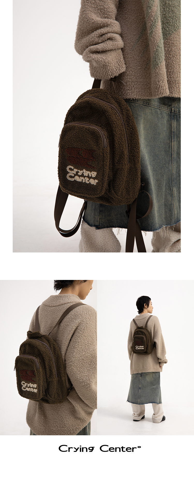 CryingCenter 毛毛熊书包 刺绣Logo羊羔毛双肩背包 哭喊中心