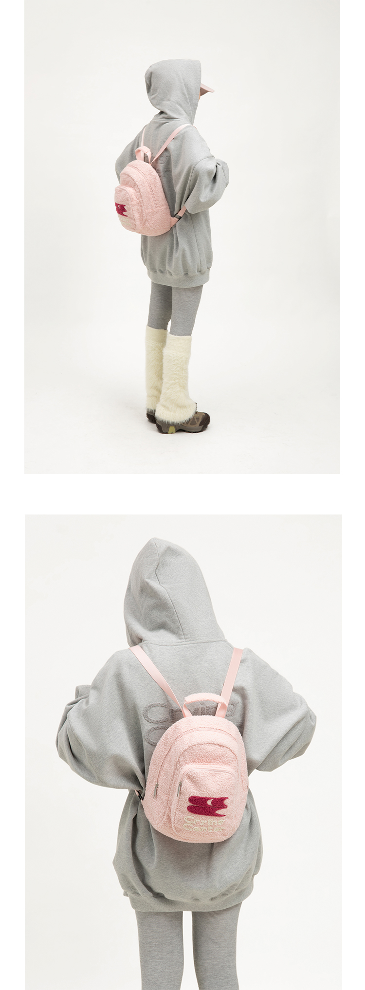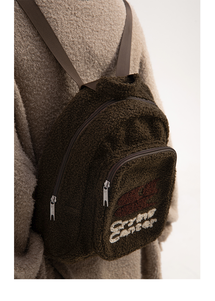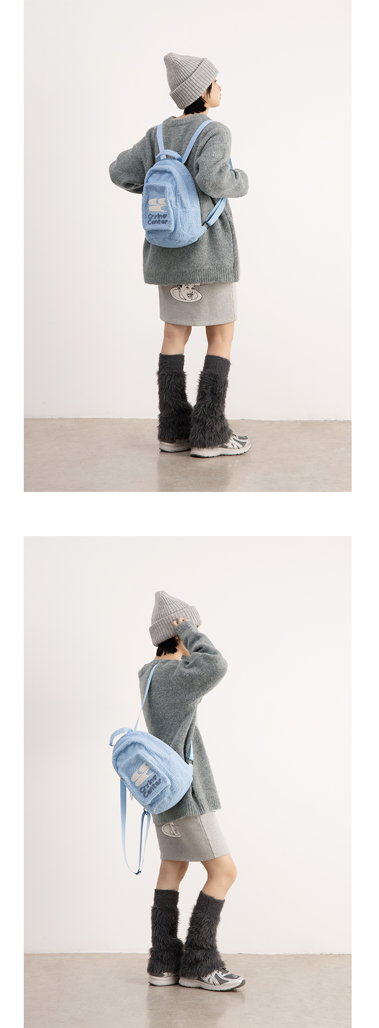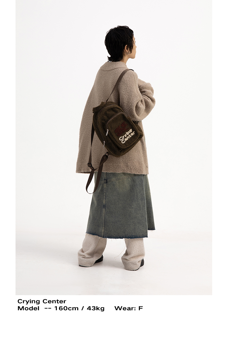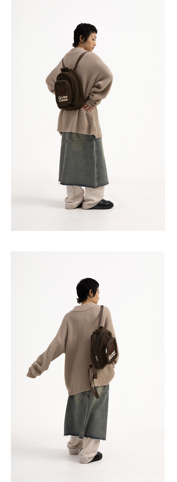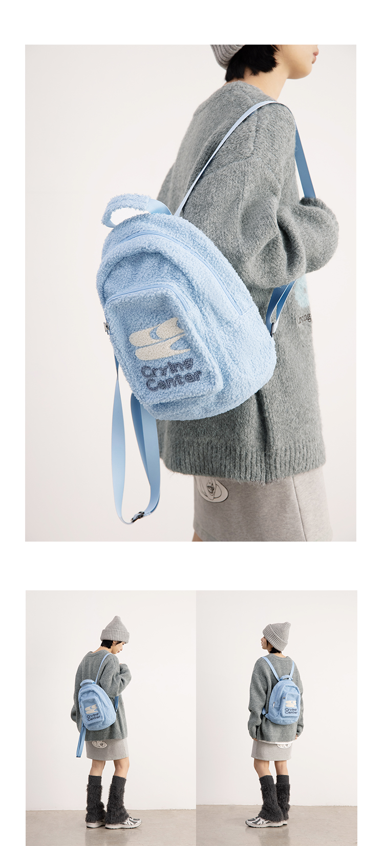 CryingCenter 毛毛熊书包 刺绣Logo羊羔毛双肩背包 哭喊中心