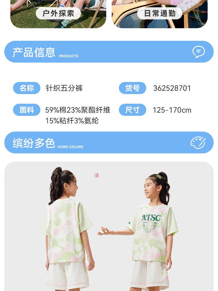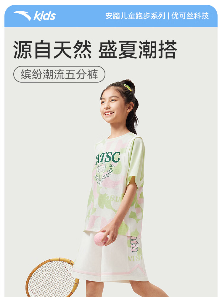 安踏儿童针织五分裤女大童2025夏季亲肤透气针织五分裤362528701