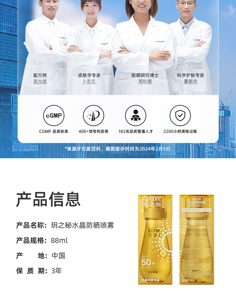 玥之秘水晶防晒喷雾 SPF50+ PA++ + 88ml