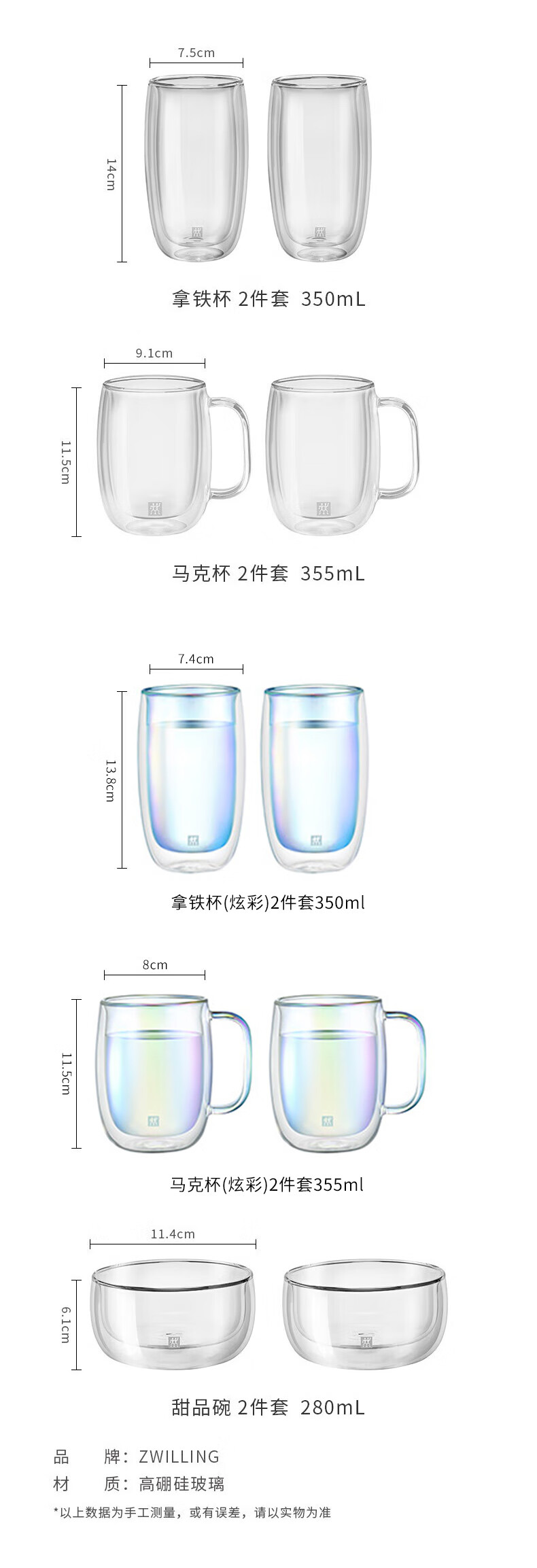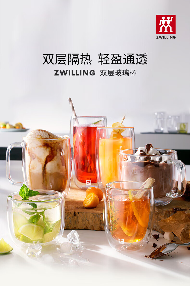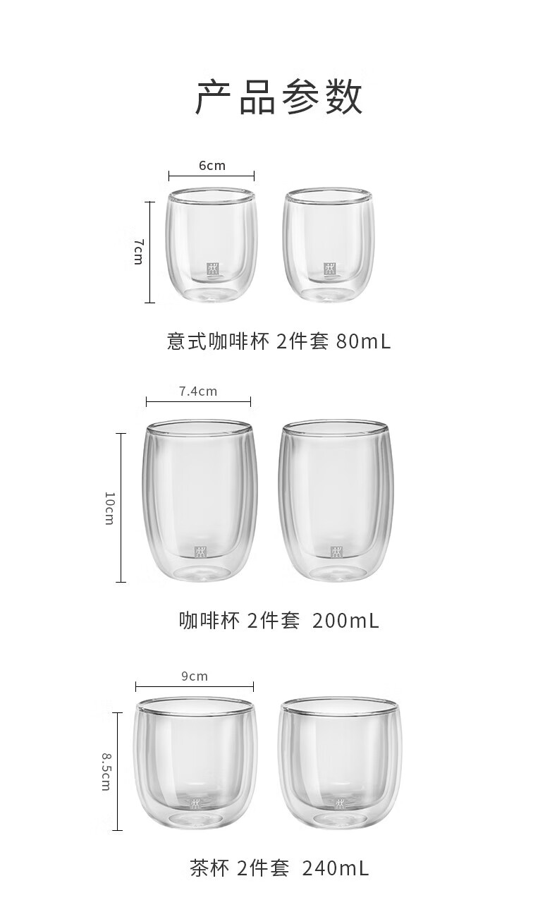 双立人 ZWILLING 双层隔热玻璃杯两件套(200ml)