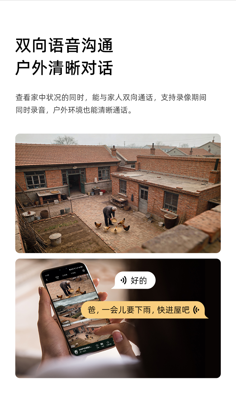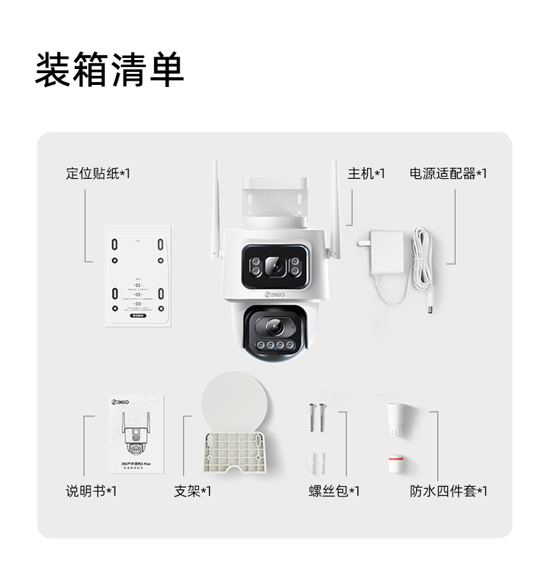 【超值】360智能摄像机6C双摄版 一机双画 双200万镜头 微光夜视 AI移动侦测 360度全景画面 双向通话功能