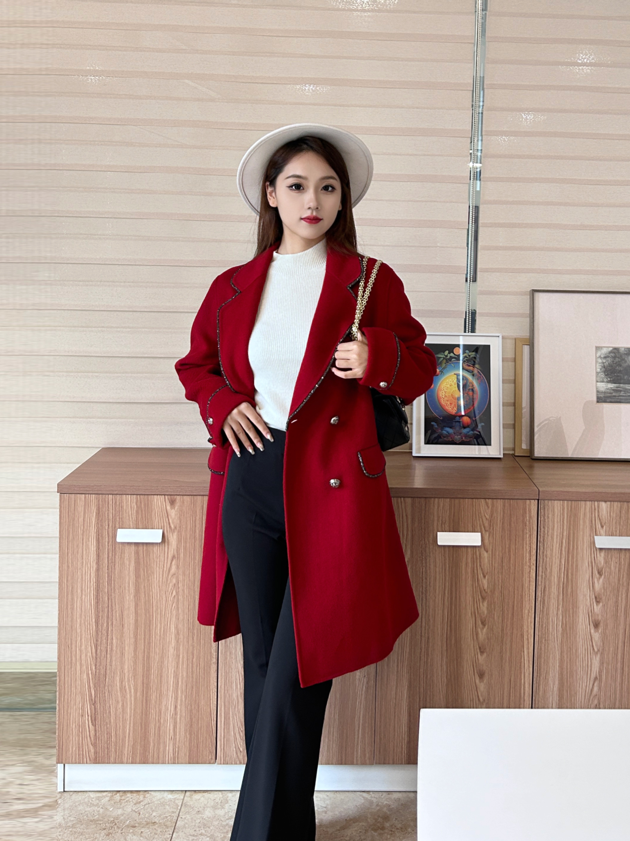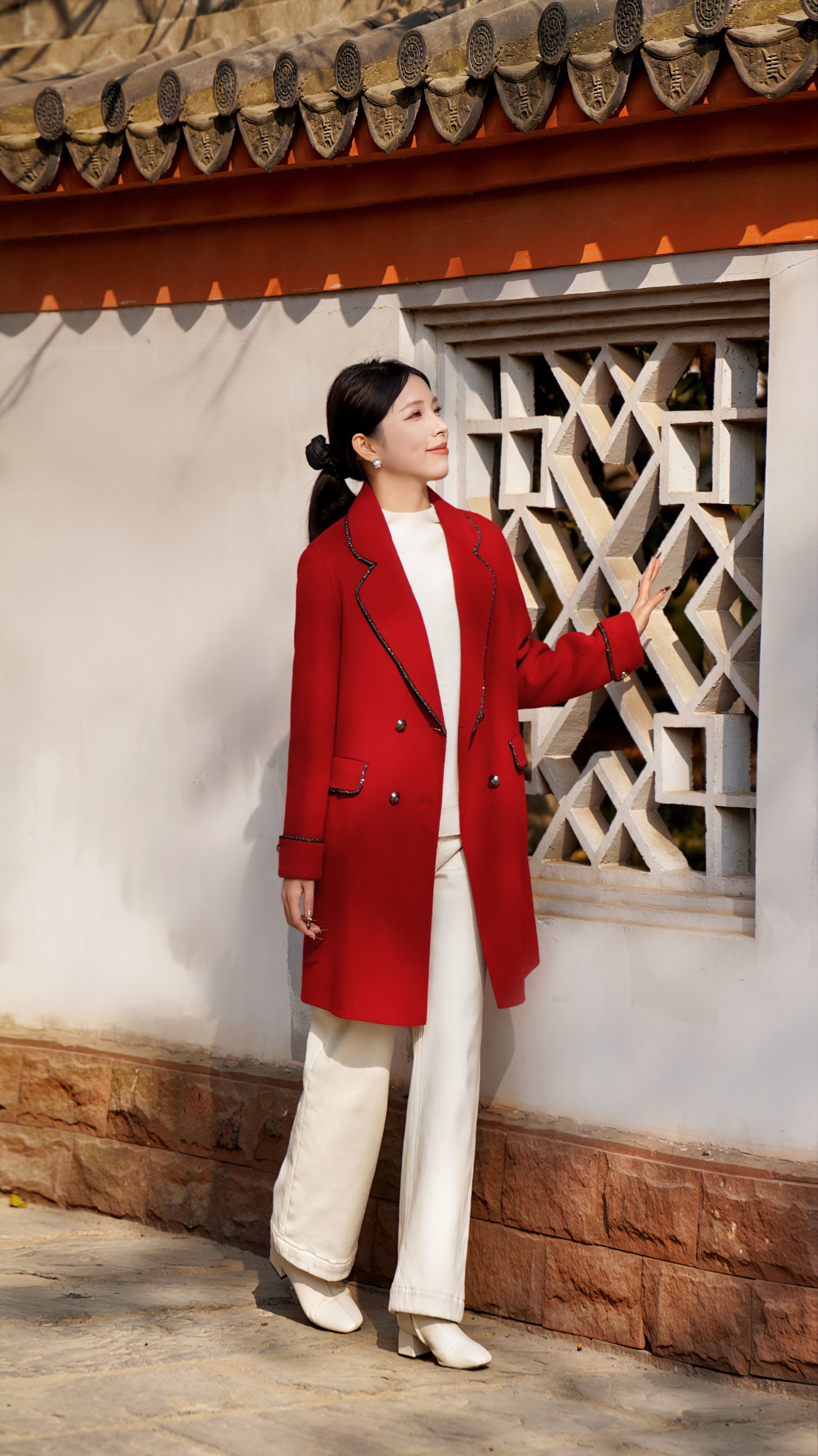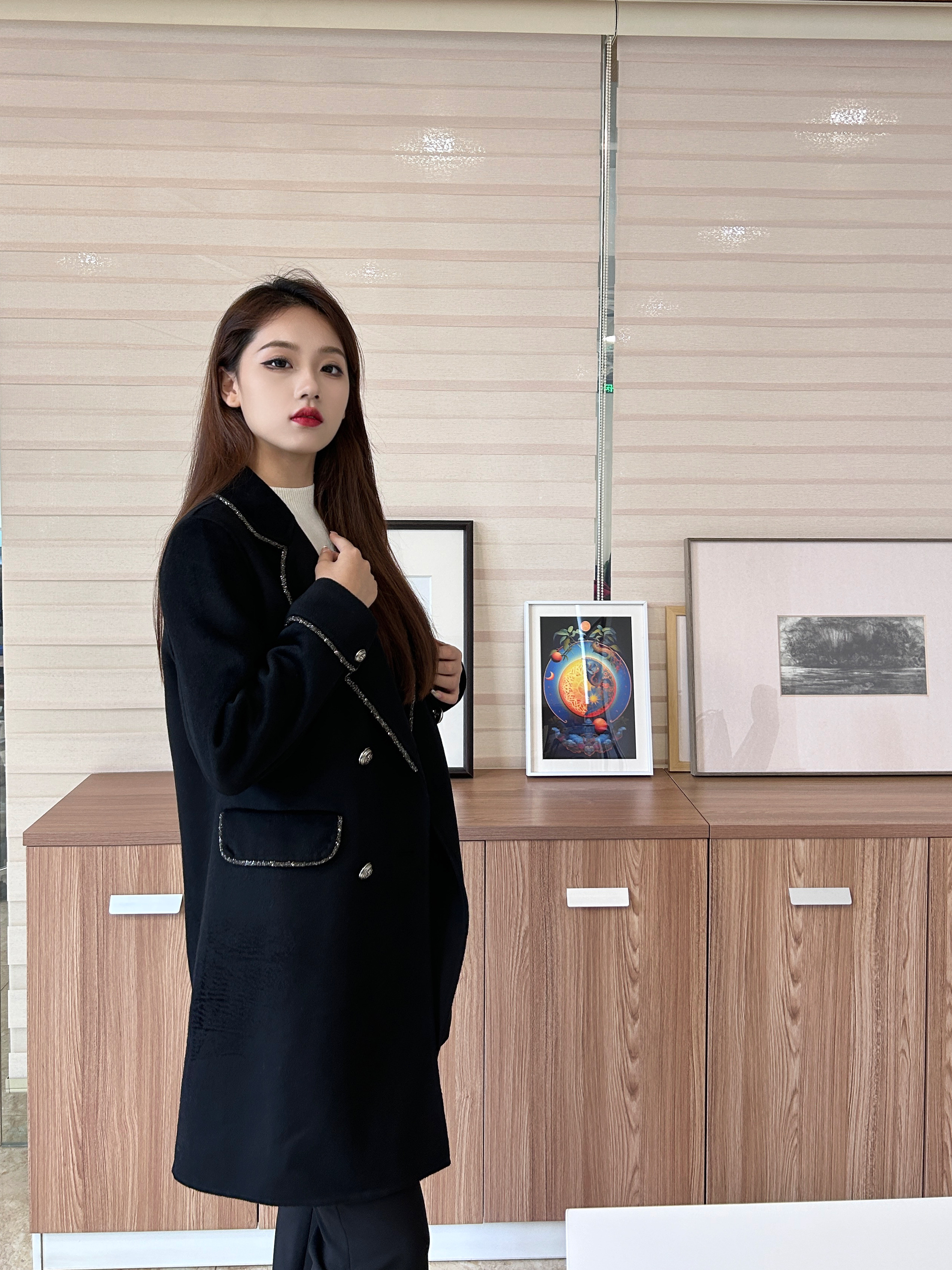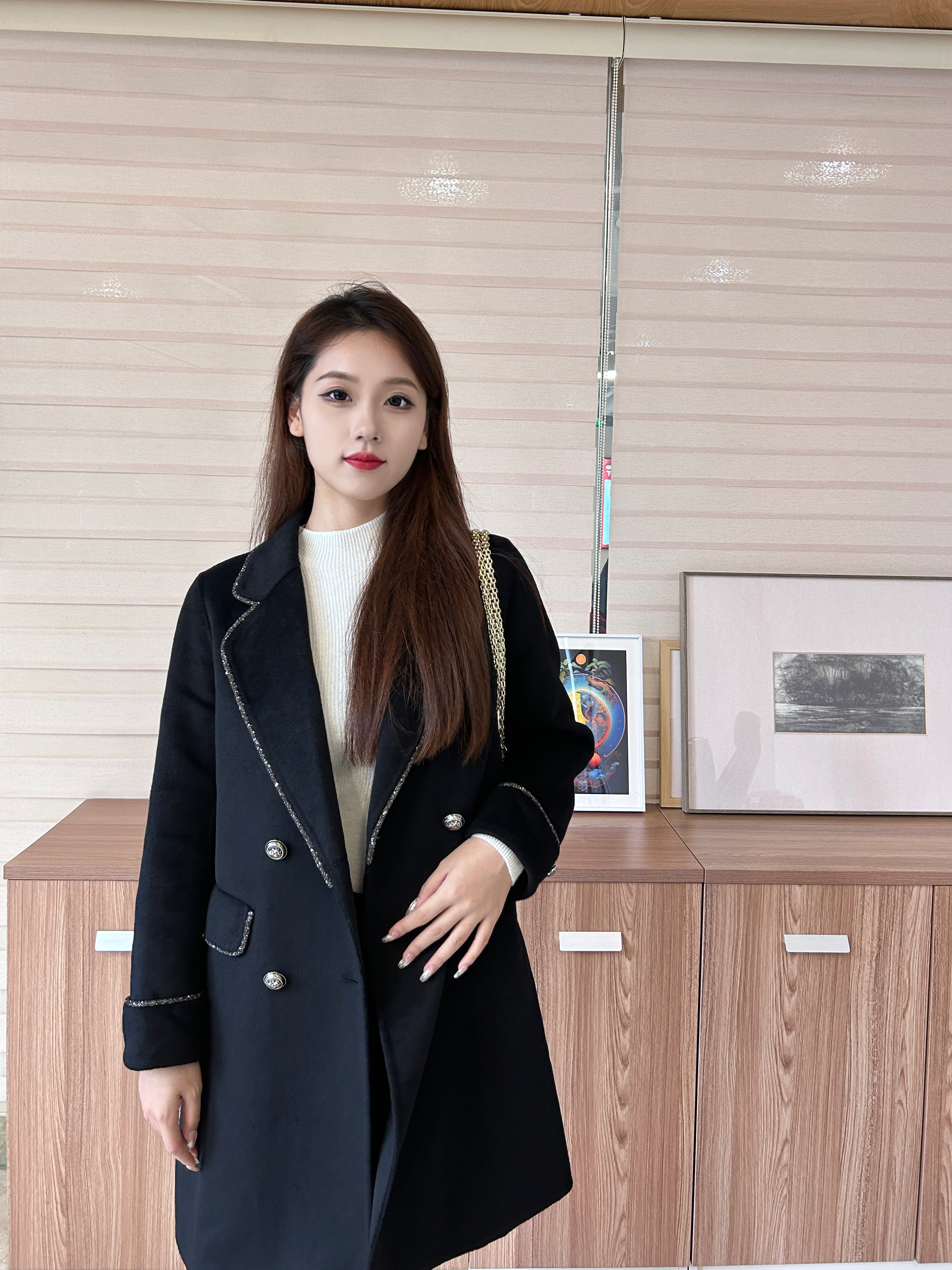 门襟复古双排扣的设计,穿脱方便,袖扣翻边开衩,